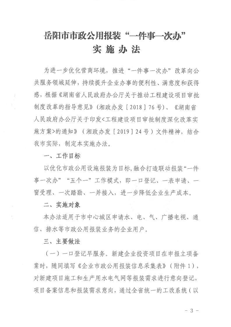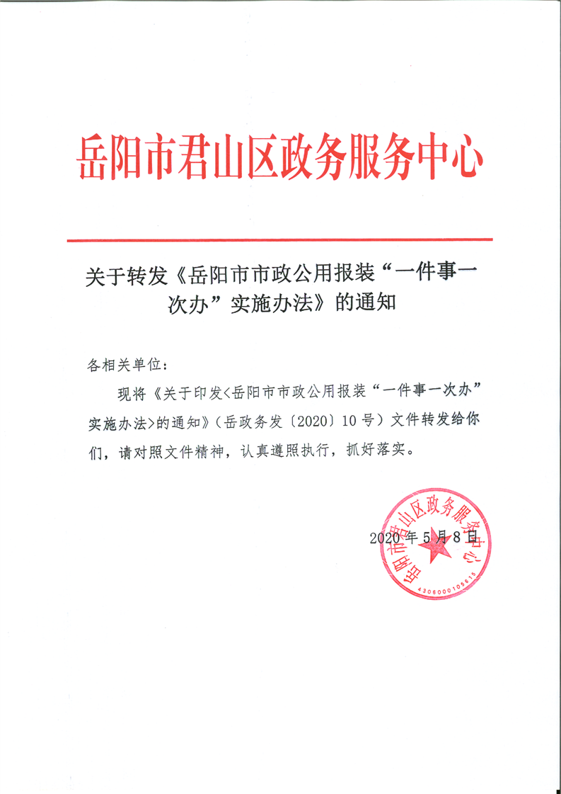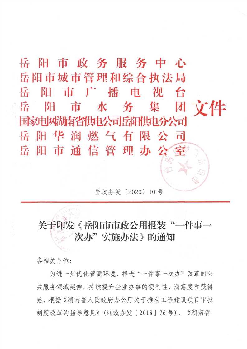 关于转发《岳阳市市政公用报装“一件事一次办”实施办法》的通知