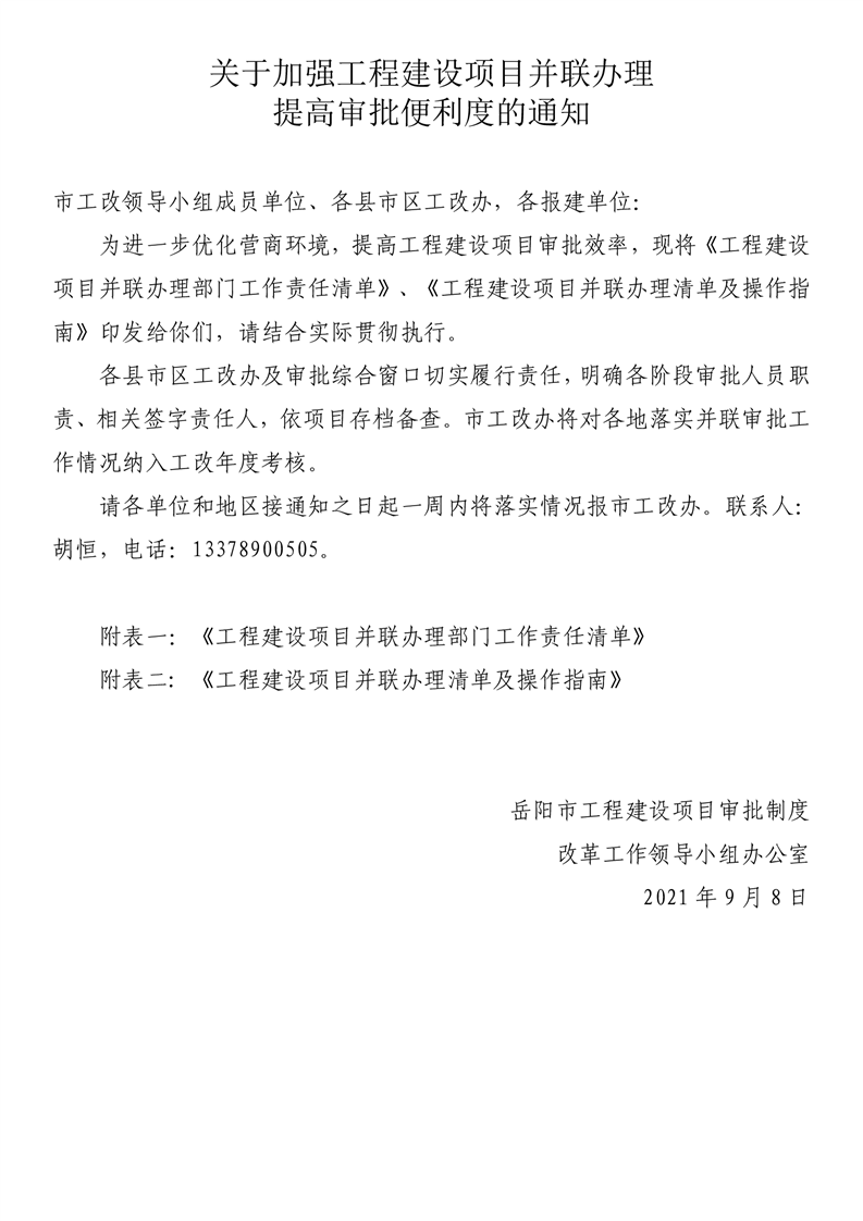 关于加强工程建设项目并联办理提高审批便利度的通知