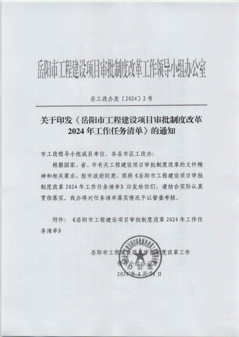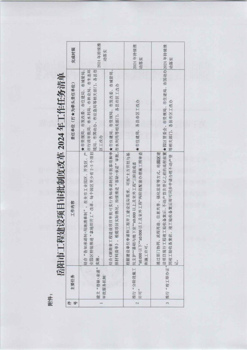 关于印发《岳阳市工程建设项目审批制度改革2024年工作任务清单》的通知