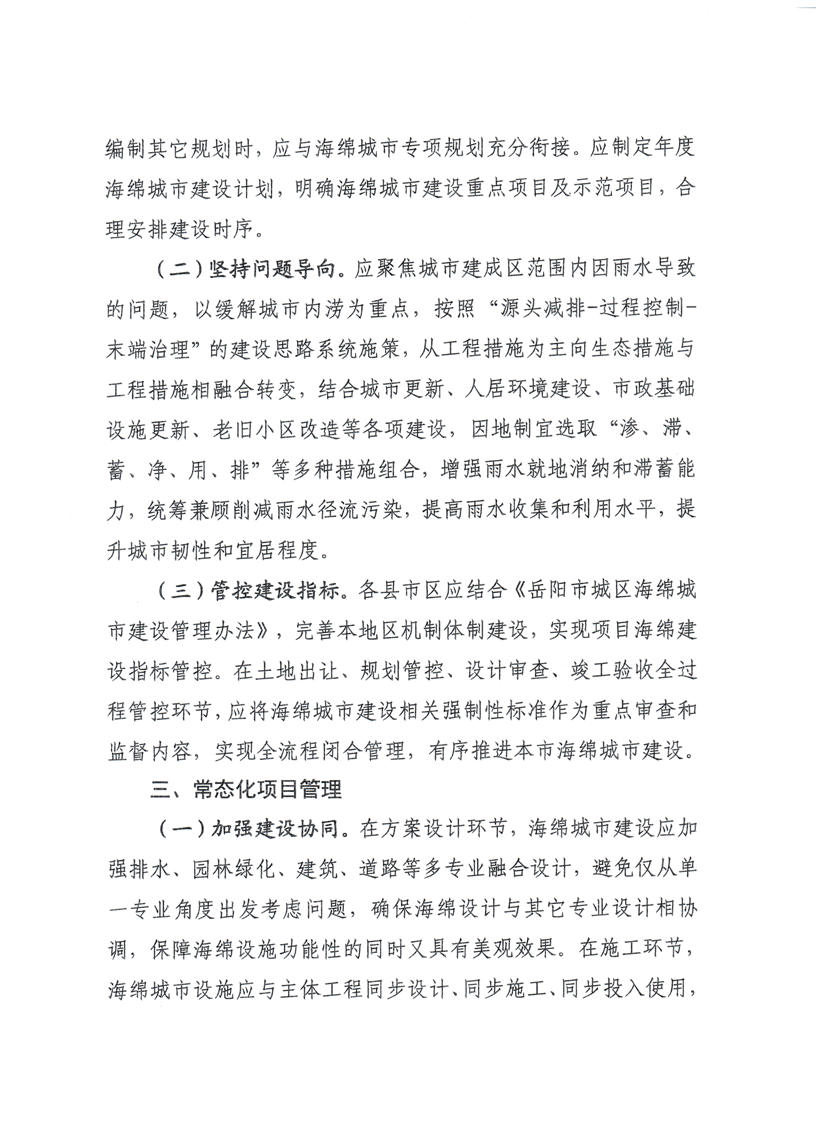 关于印发《2025年岳阳市海绵城市建设工作要点》的通知