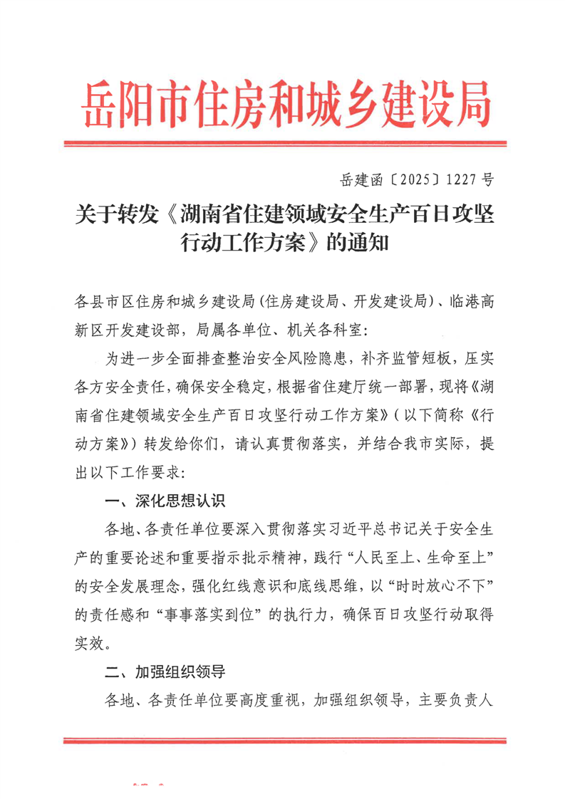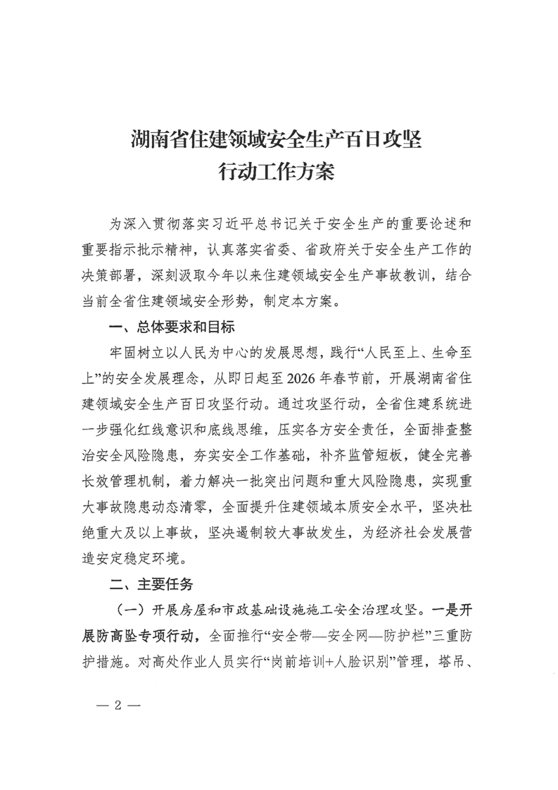 关于转发《湖南省住建领域安全生产百日攻坚行动方案》的通知