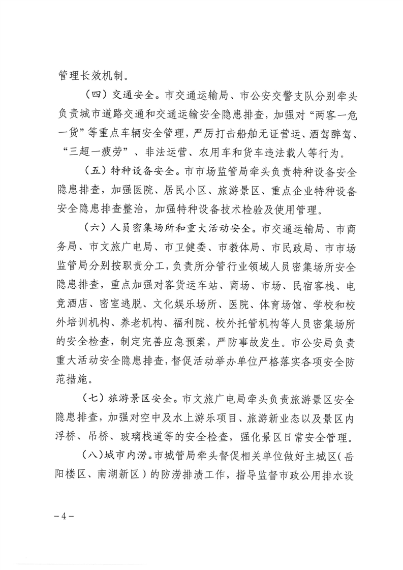 关于印发《岳阳市城市运行安全隐患排查整治行动方案》的通知