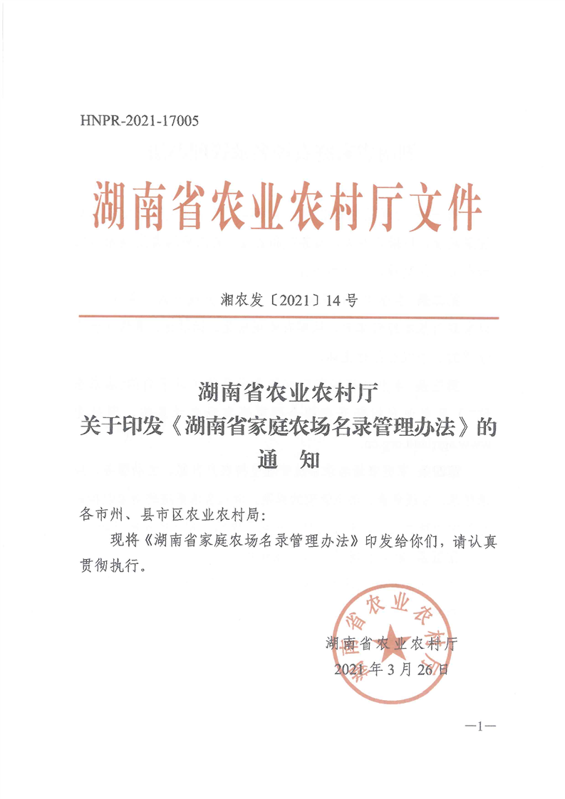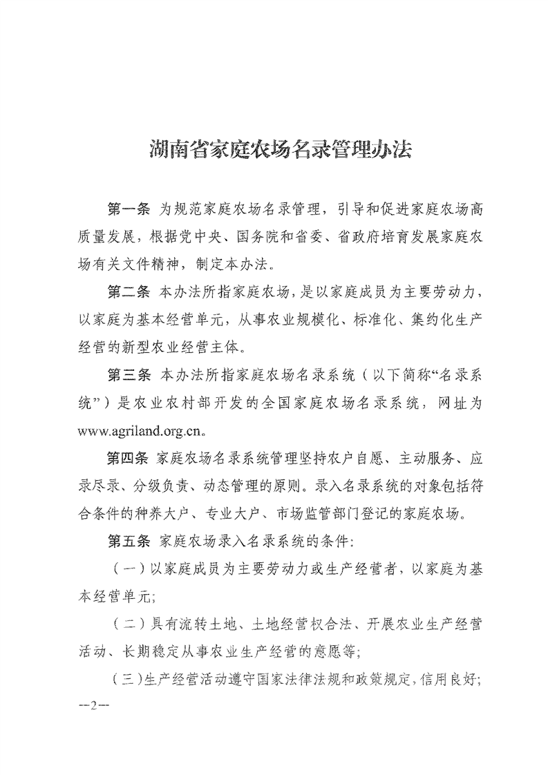 湖南省农业农村厅关于印发《湖南省家庭农场名录管理办法》的通知