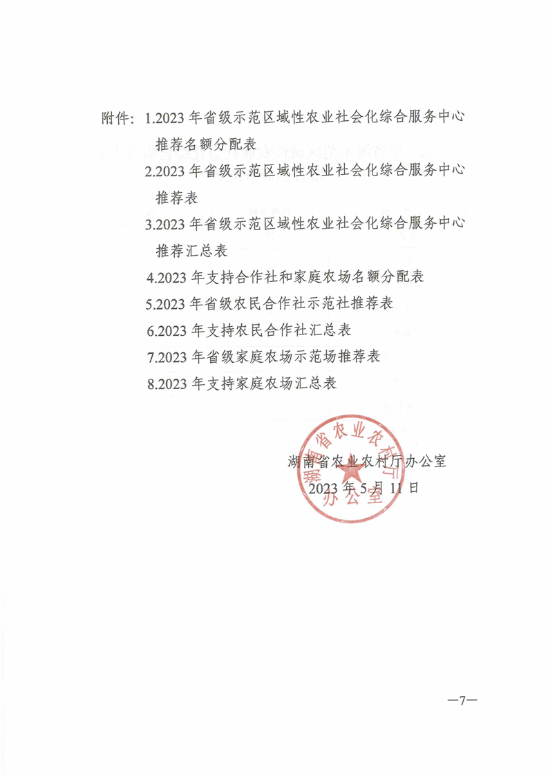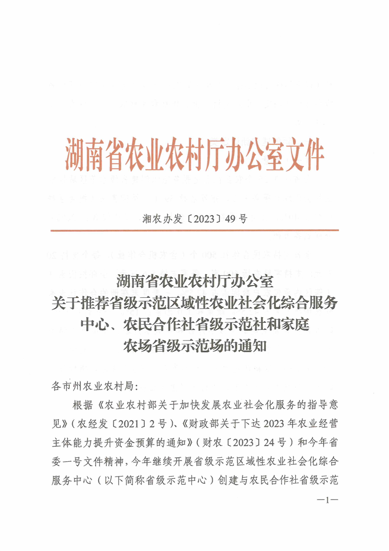 湖南省农业农村厅办公室关于推荐省级示范区域性农业社会化综合服务中心、农民合作社省级示范社和家庭农场省级示范场的通知