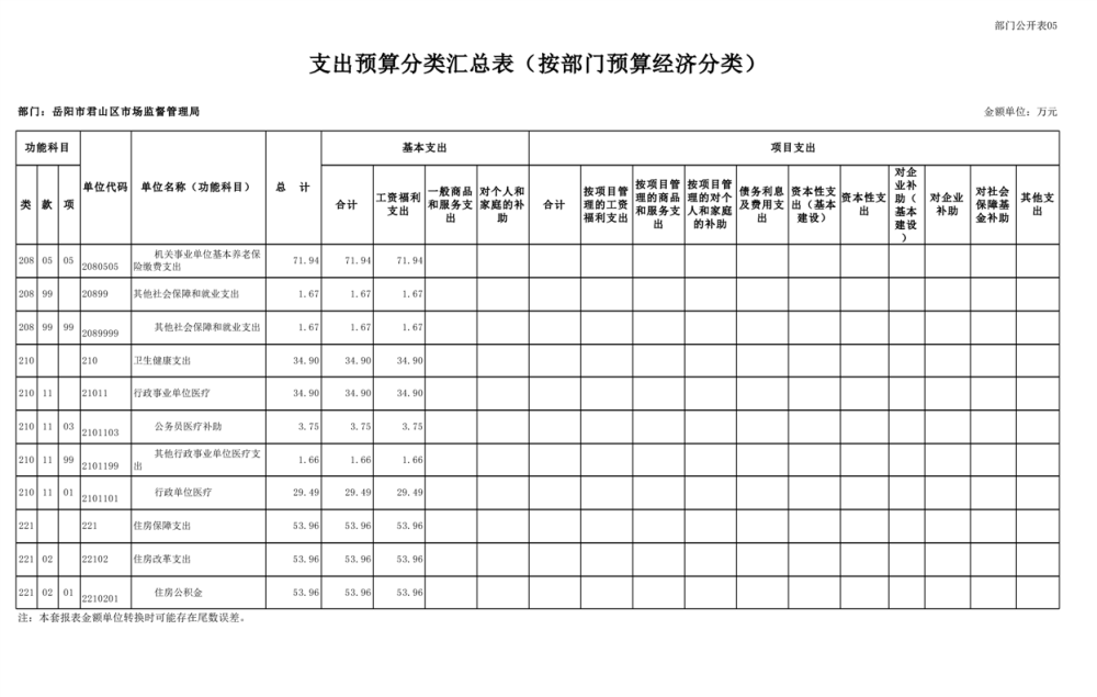 2025年岳阳市君山区市场监督管理局部门预算公开