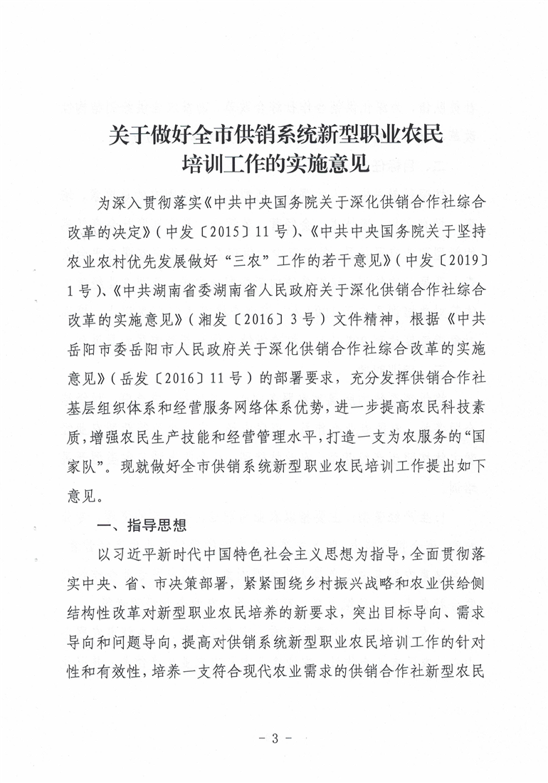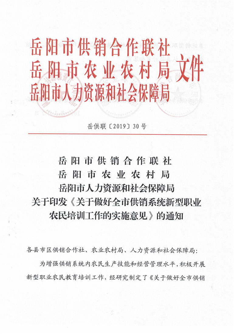 关于印发《关于做好全市供销系统新型职业农民培训工作的实施意见》的通知