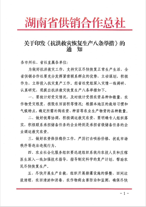 【转】关于印发《抗洪救灾恢复生产八条举措》的通知