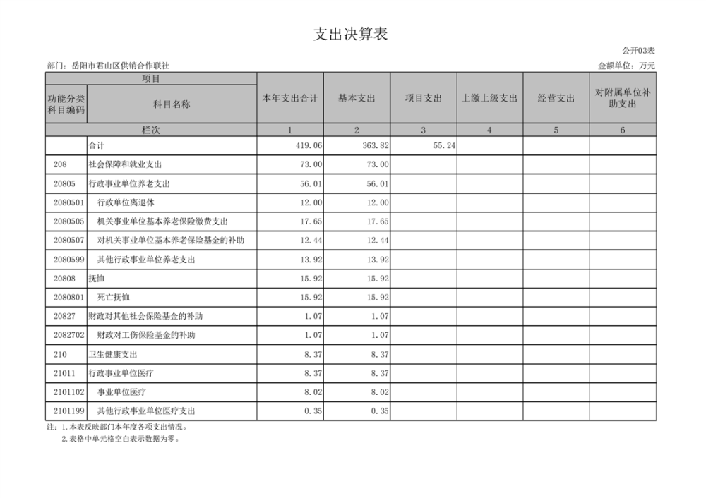 2022年度岳阳市君山区供销合作联社部门决算公开说明