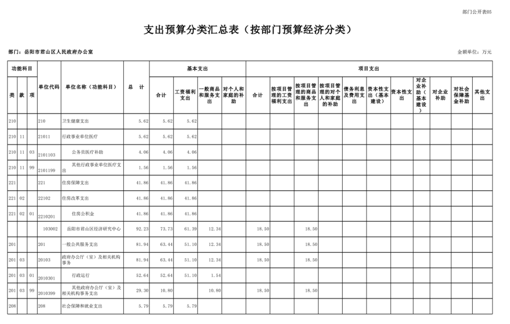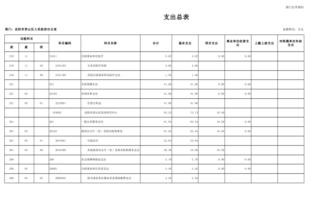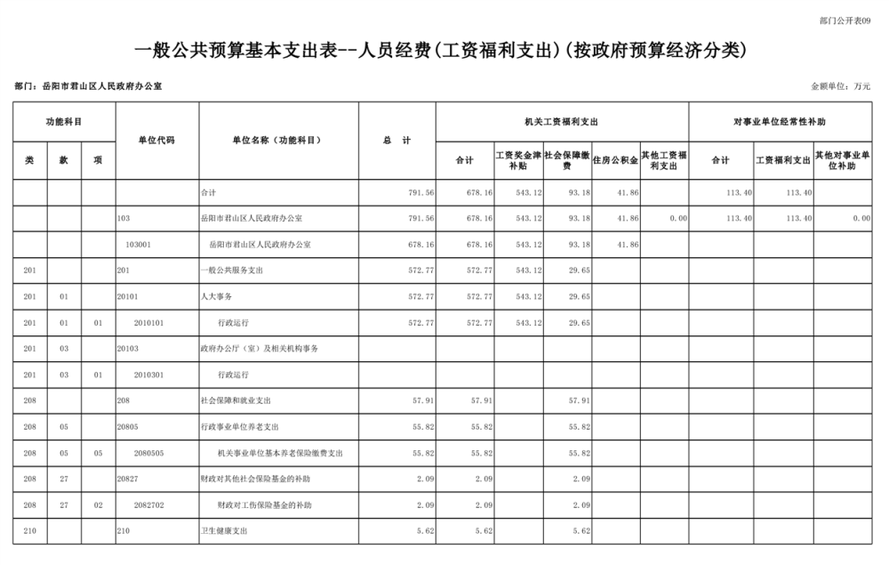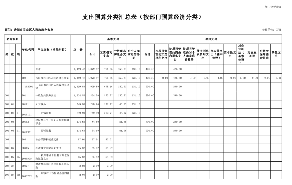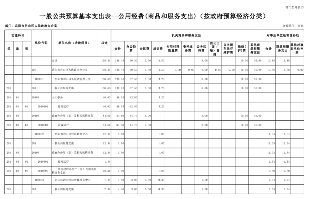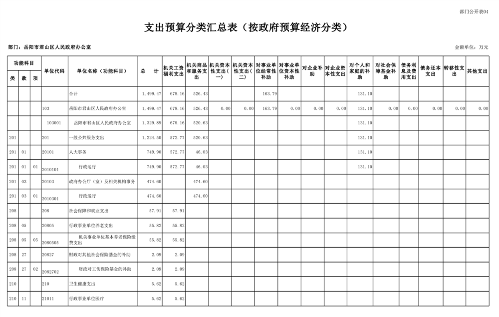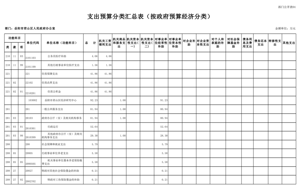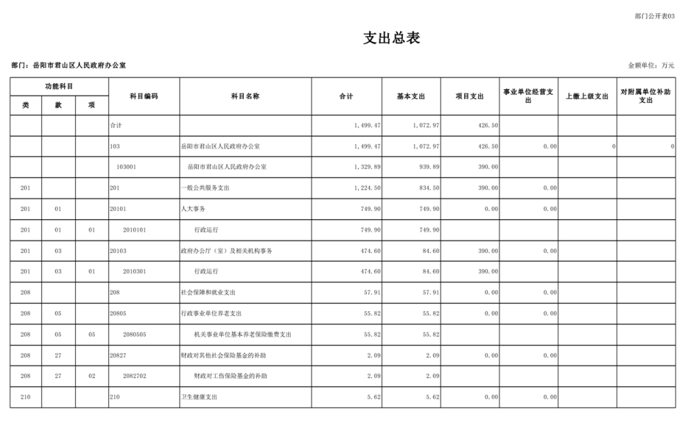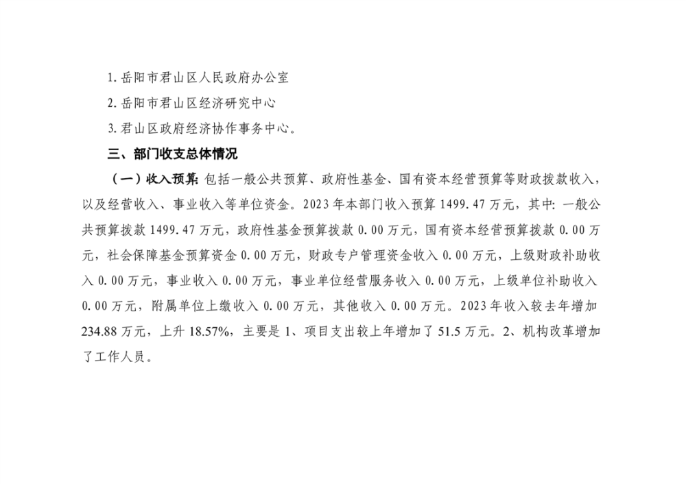 2023年君山区人民政府办公室部门(汇总)预算公开说明