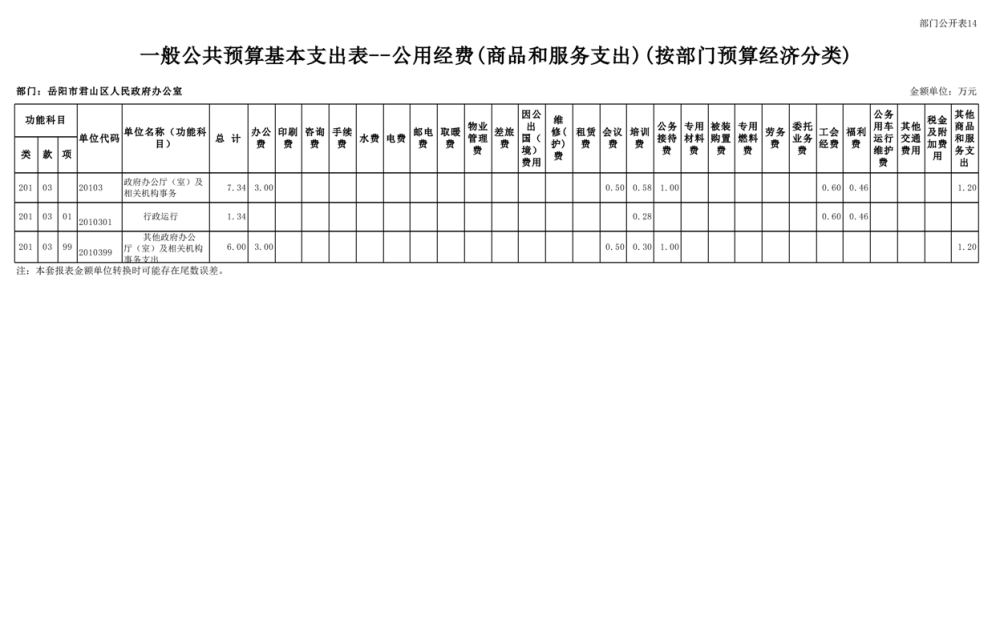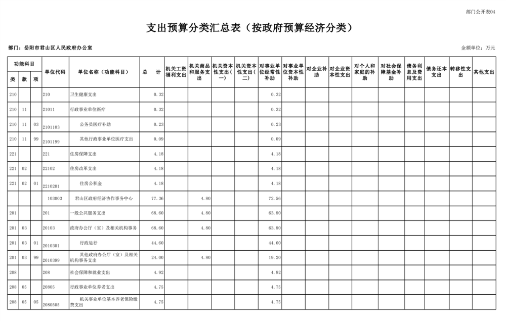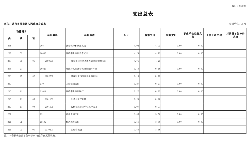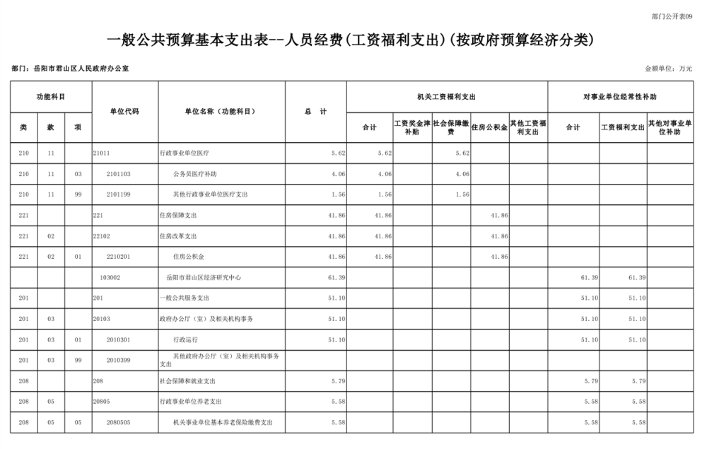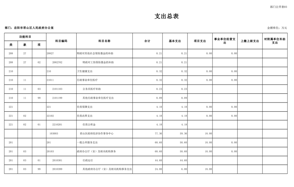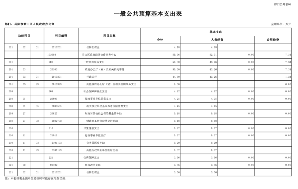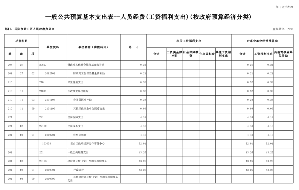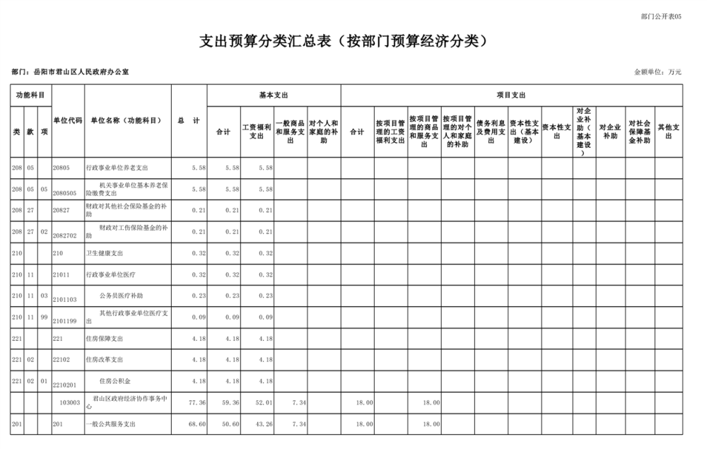 2023年君山区人民政府办公室部门(汇总)预算公开说明