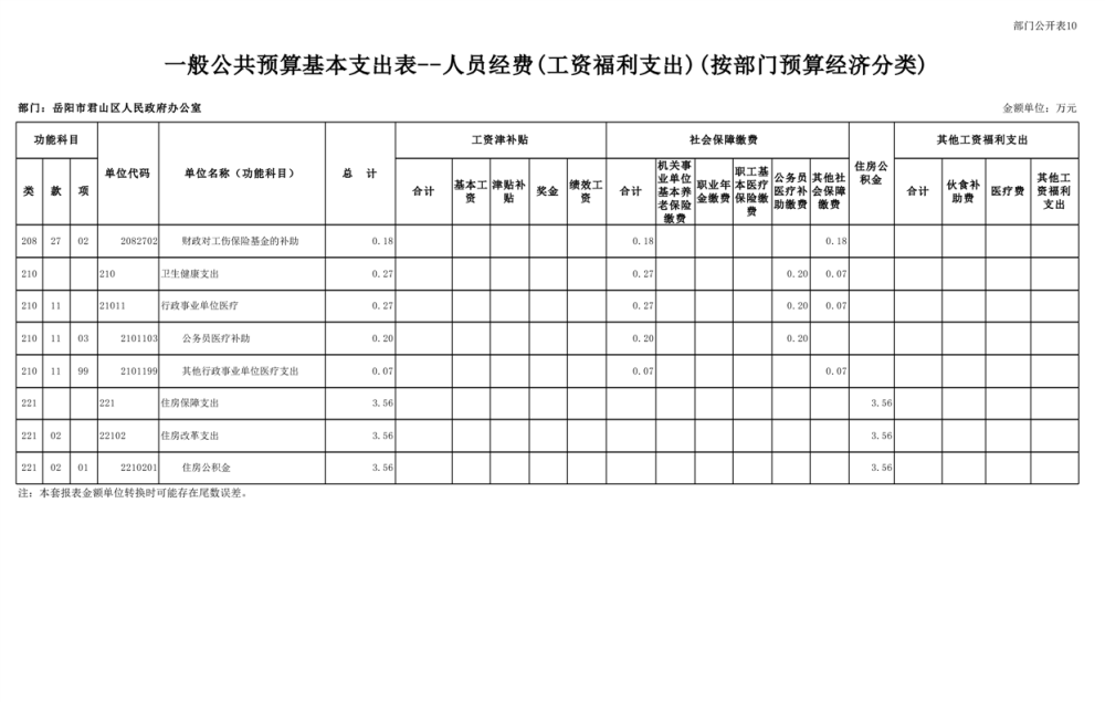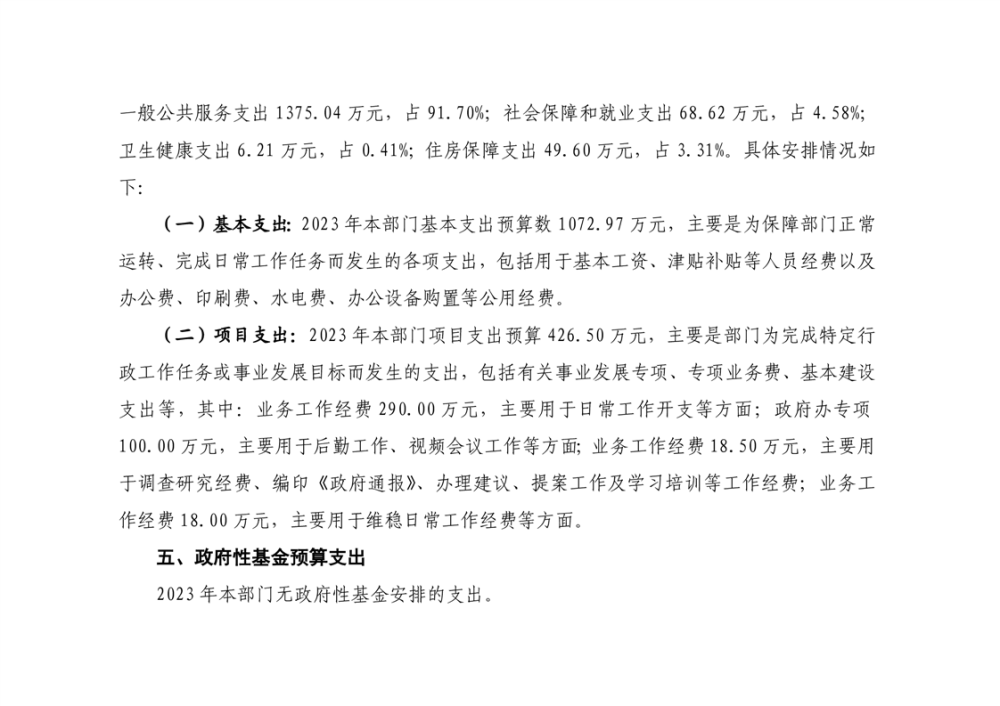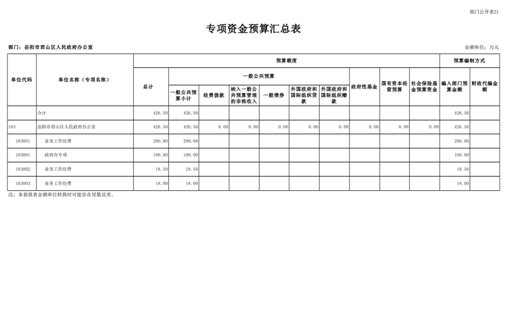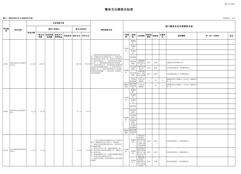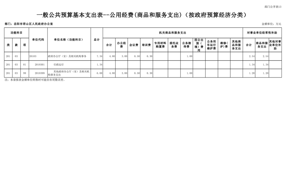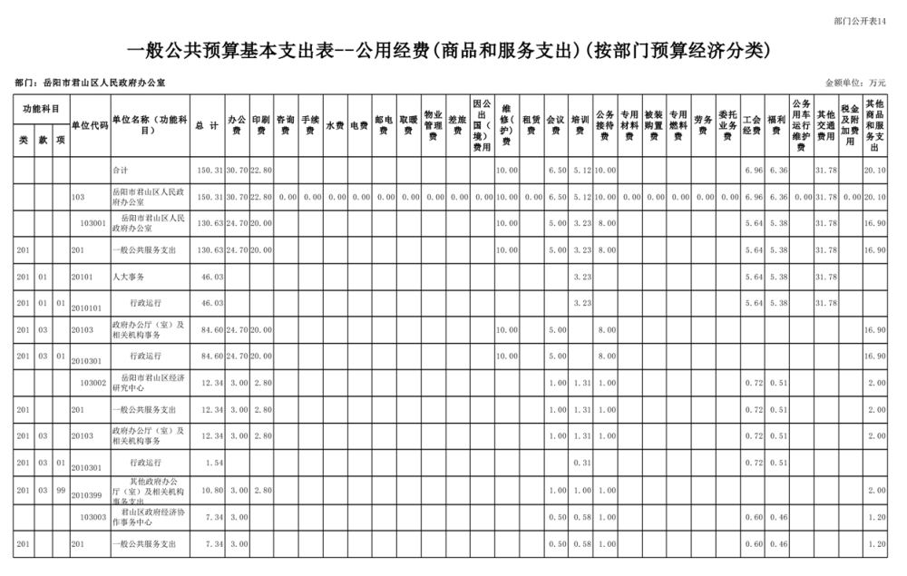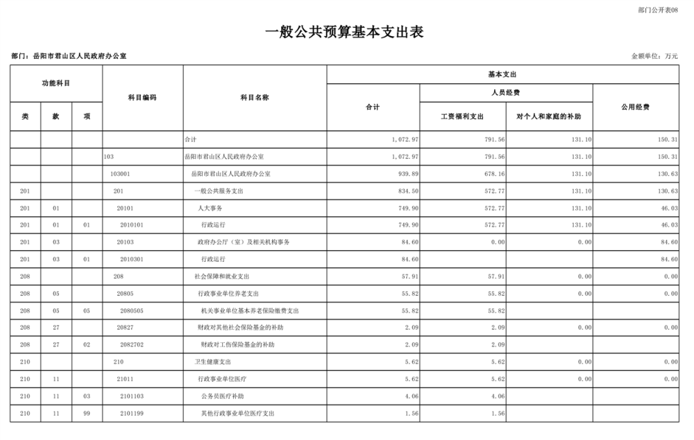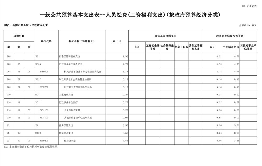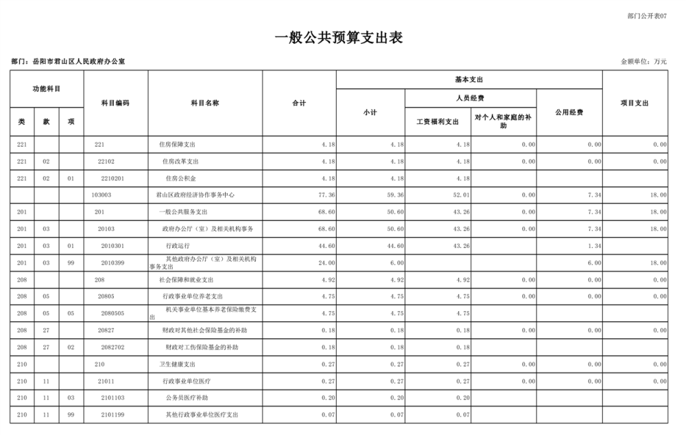 2023年君山区人民政府办公室部门(汇总)预算公开说明