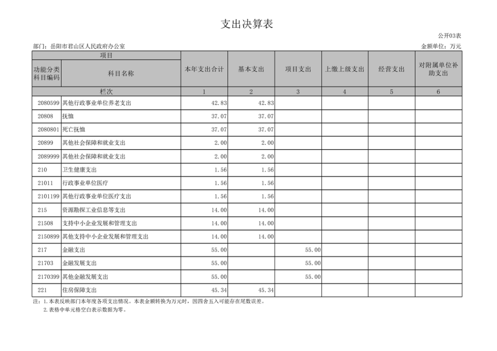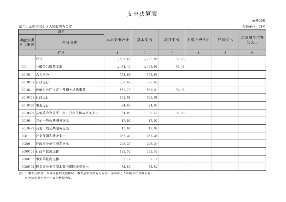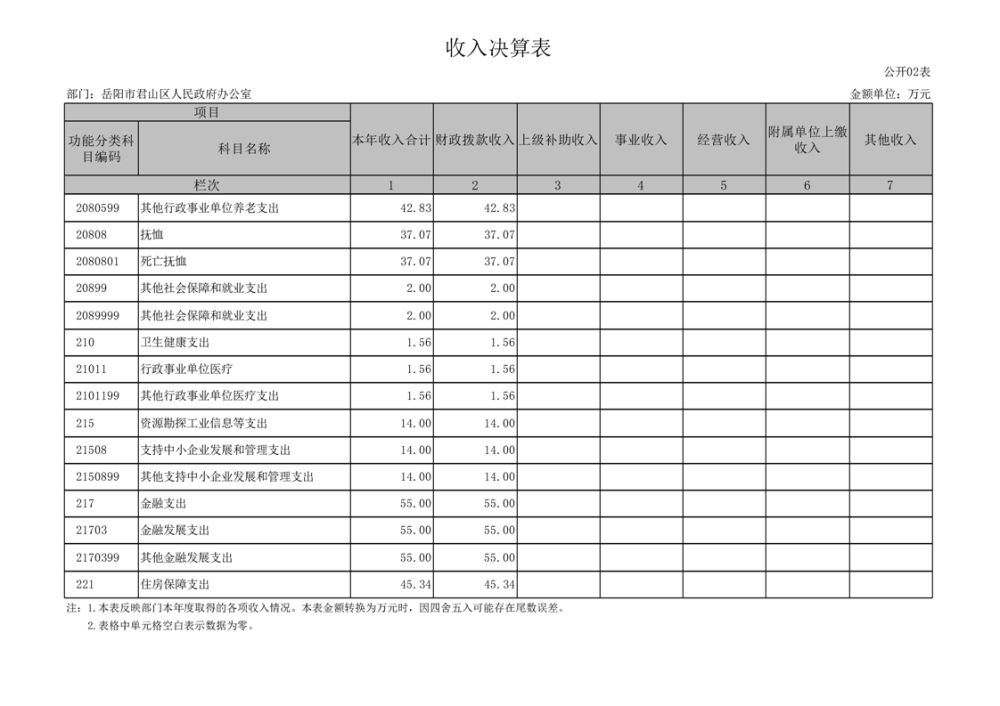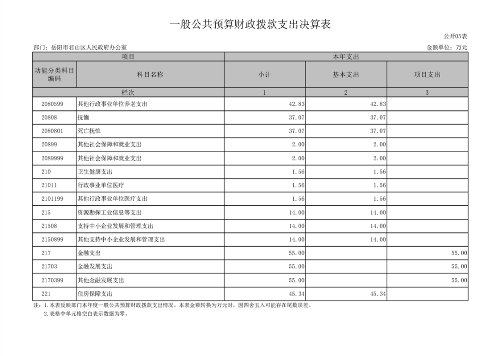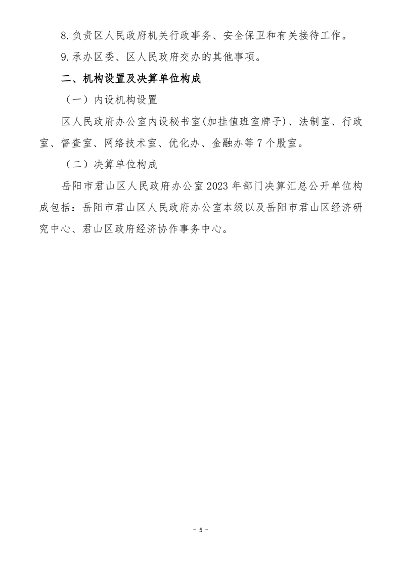 2023年度岳阳市君山区人民政府办公室(汇总)决算公开