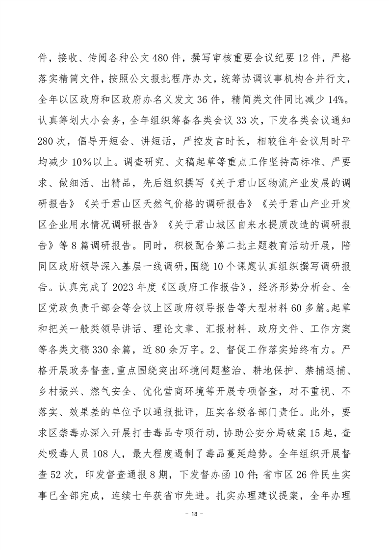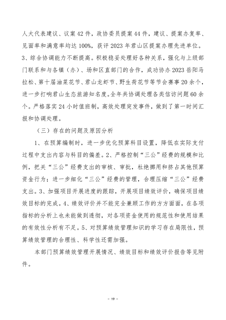 岳阳市君山区人民政府办公室绩效自评报告(部门).docx
