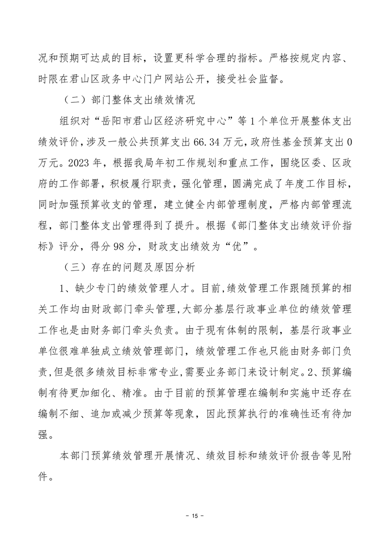 2023年度岳阳市君山区经济研究中心部门决算公开
