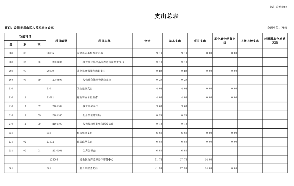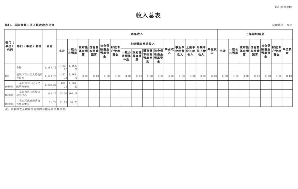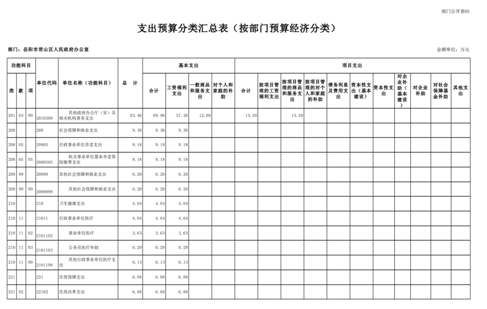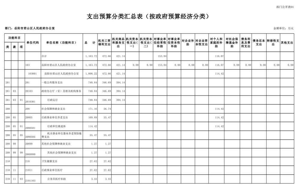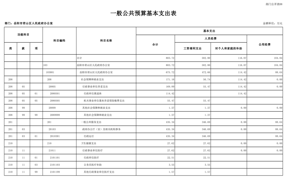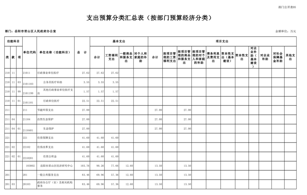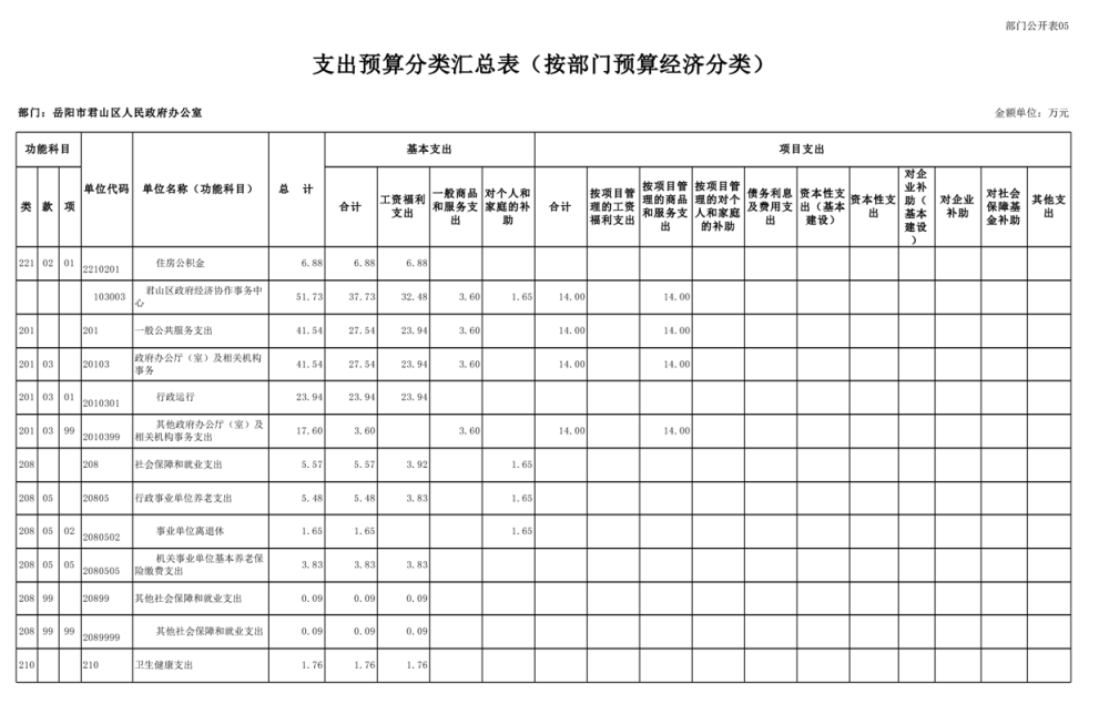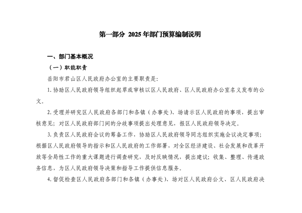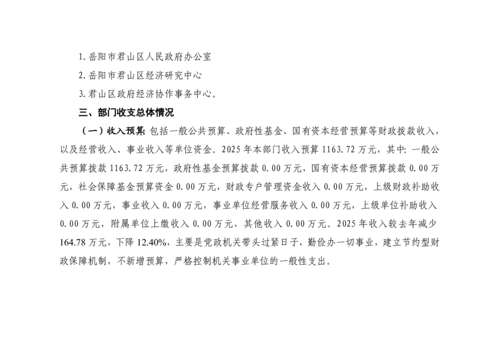 2025年岳阳市君山区人民政府办公室(部门)预算公开