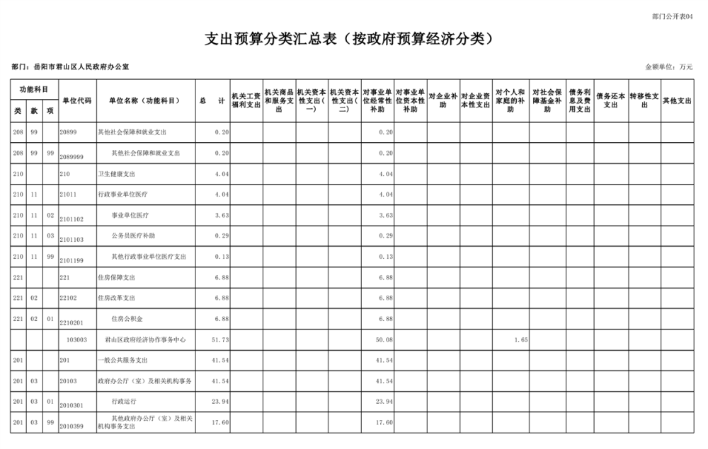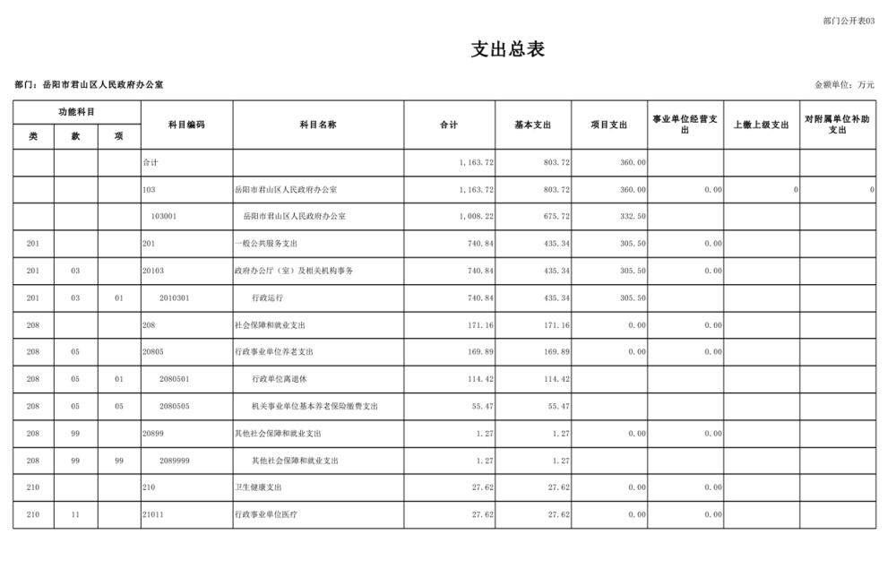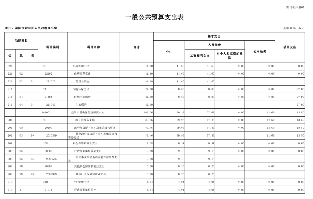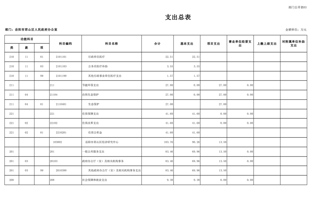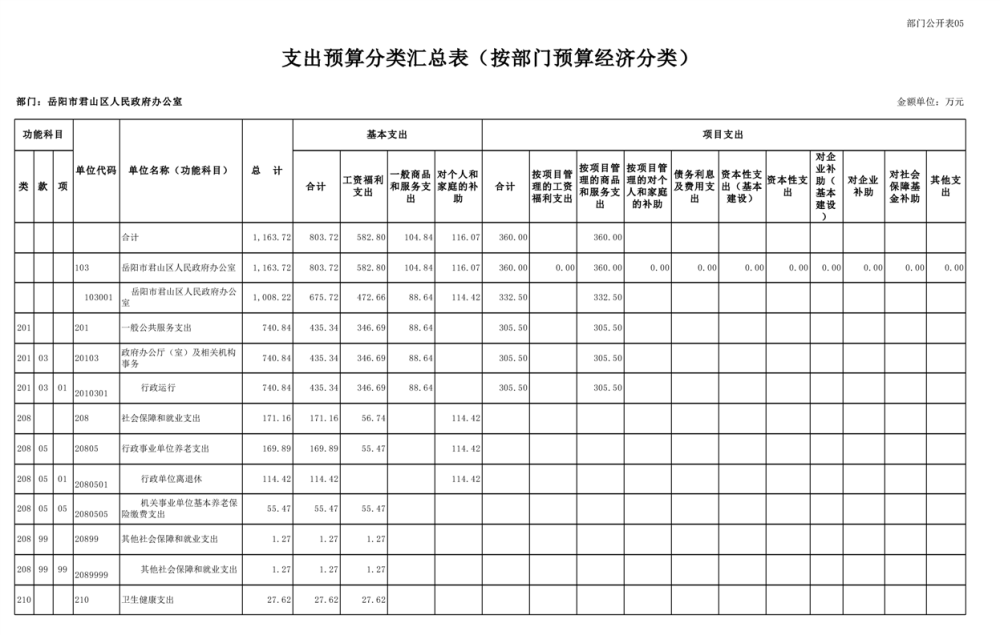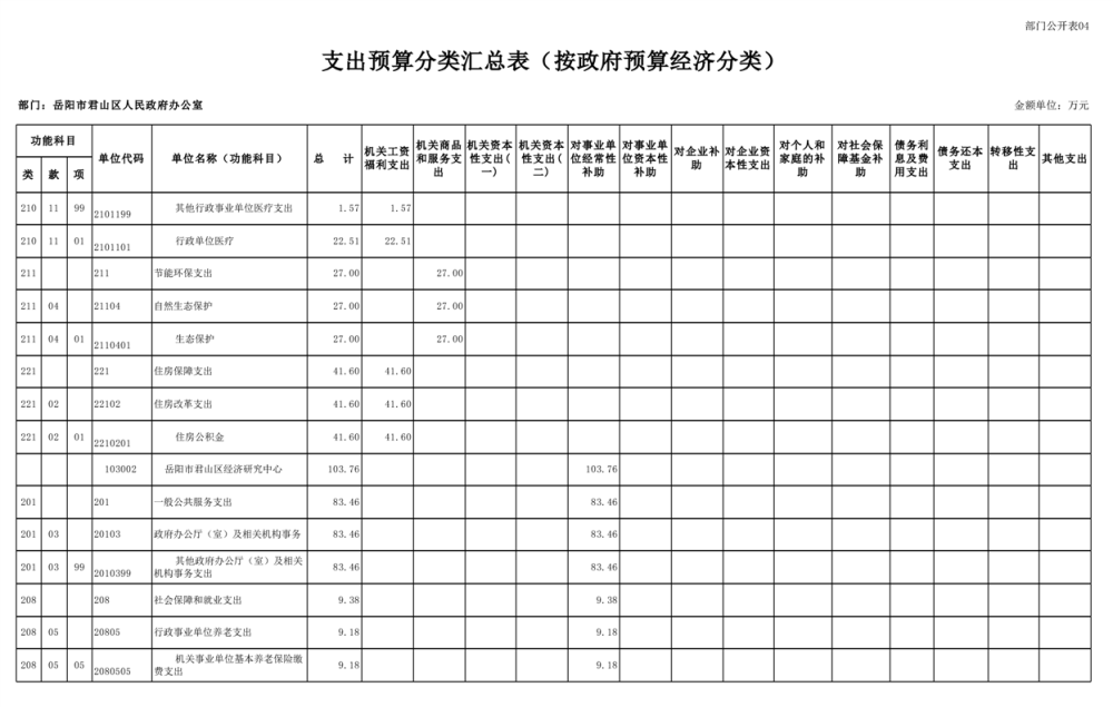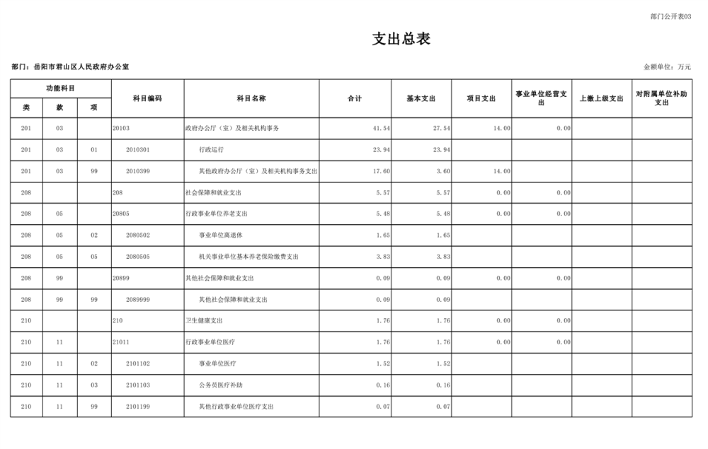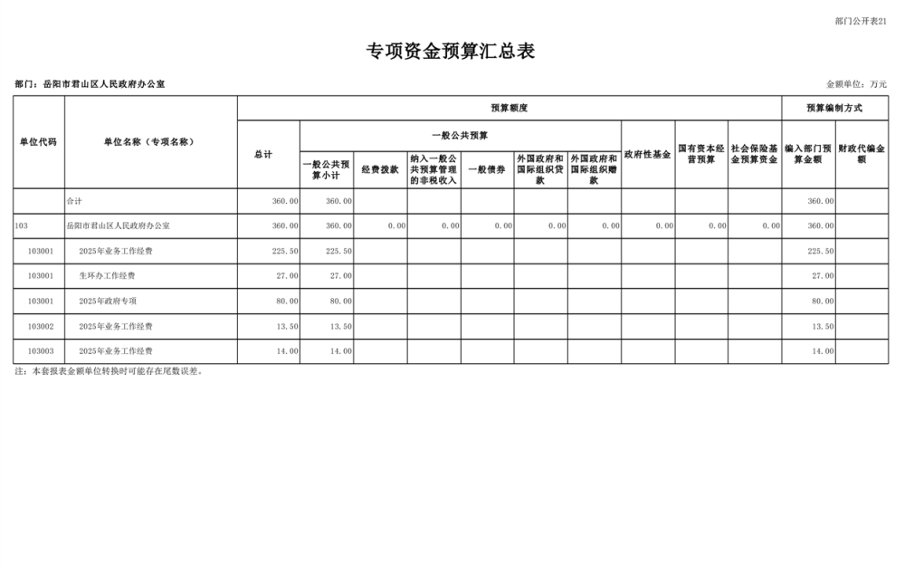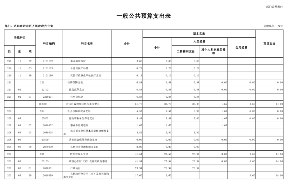 2025年岳阳市君山区人民政府办公室(部门)预算公开