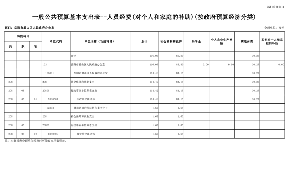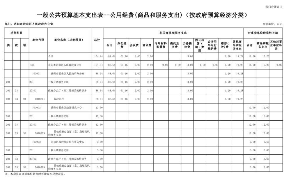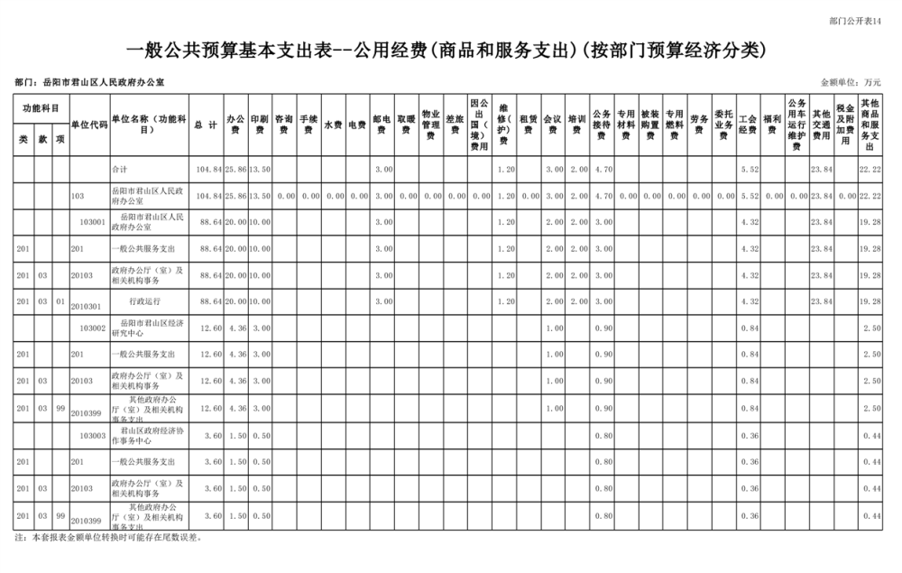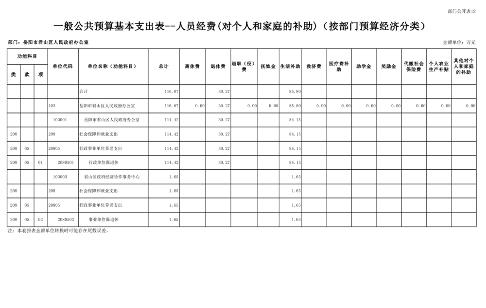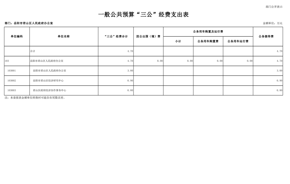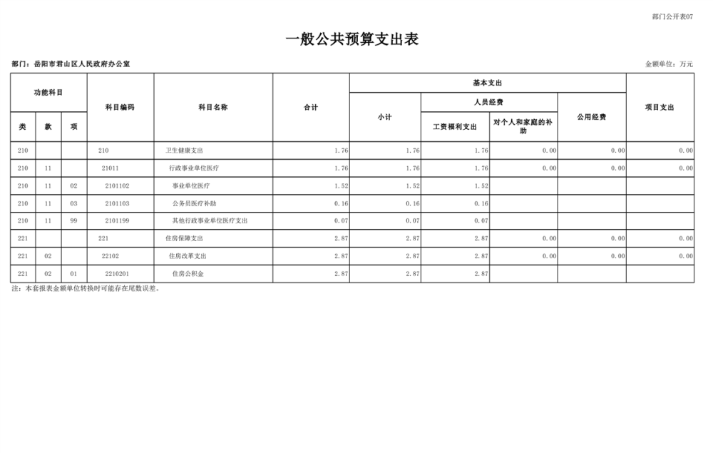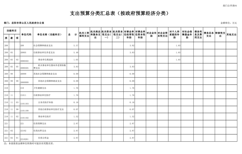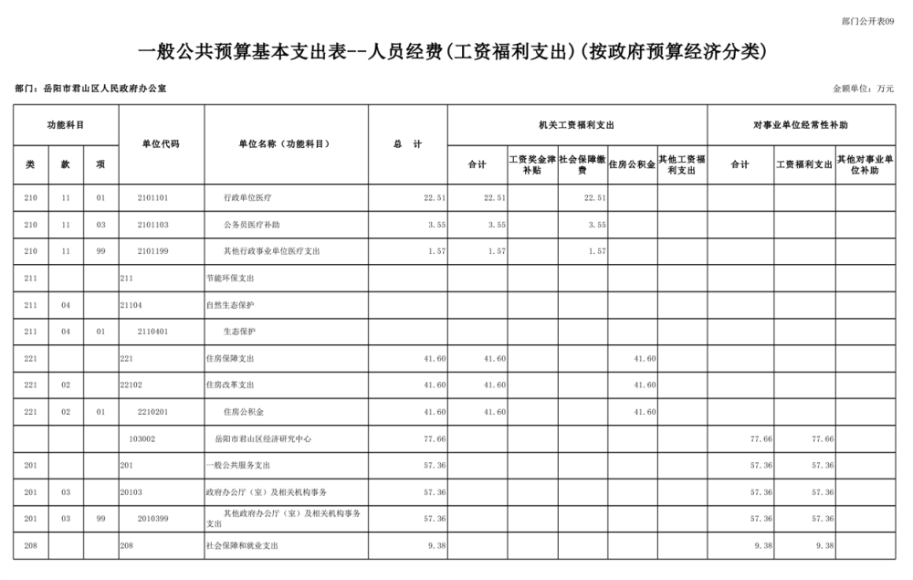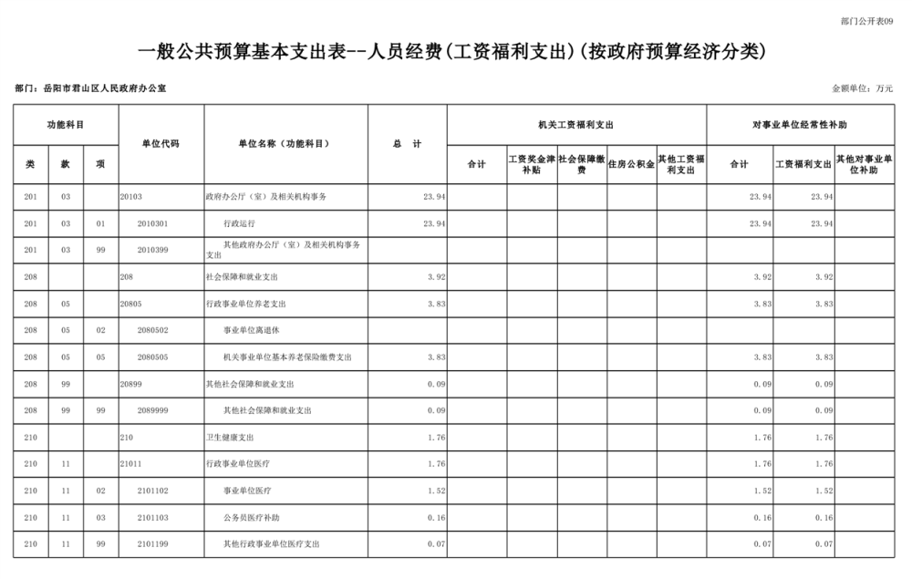 2025年岳阳市君山区人民政府办公室(部门)预算公开