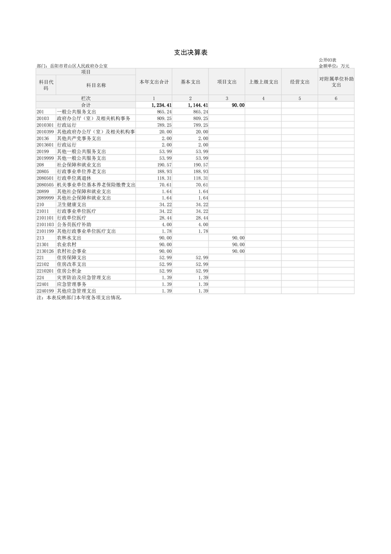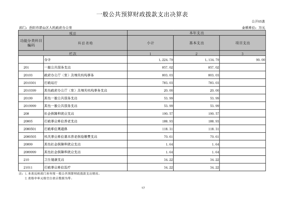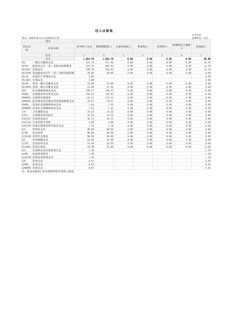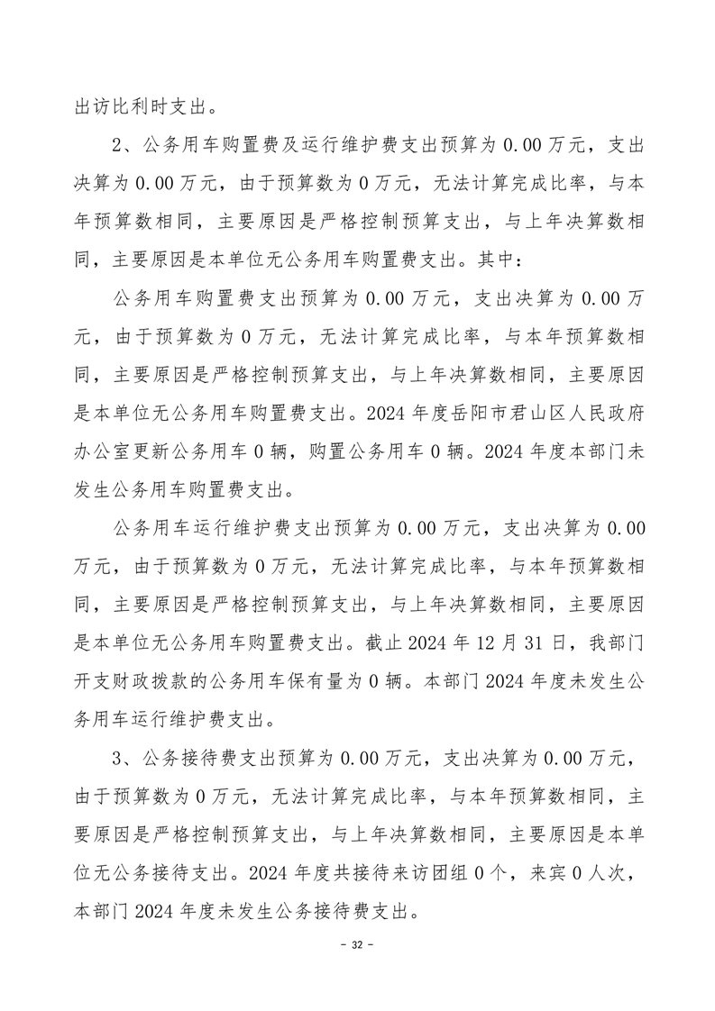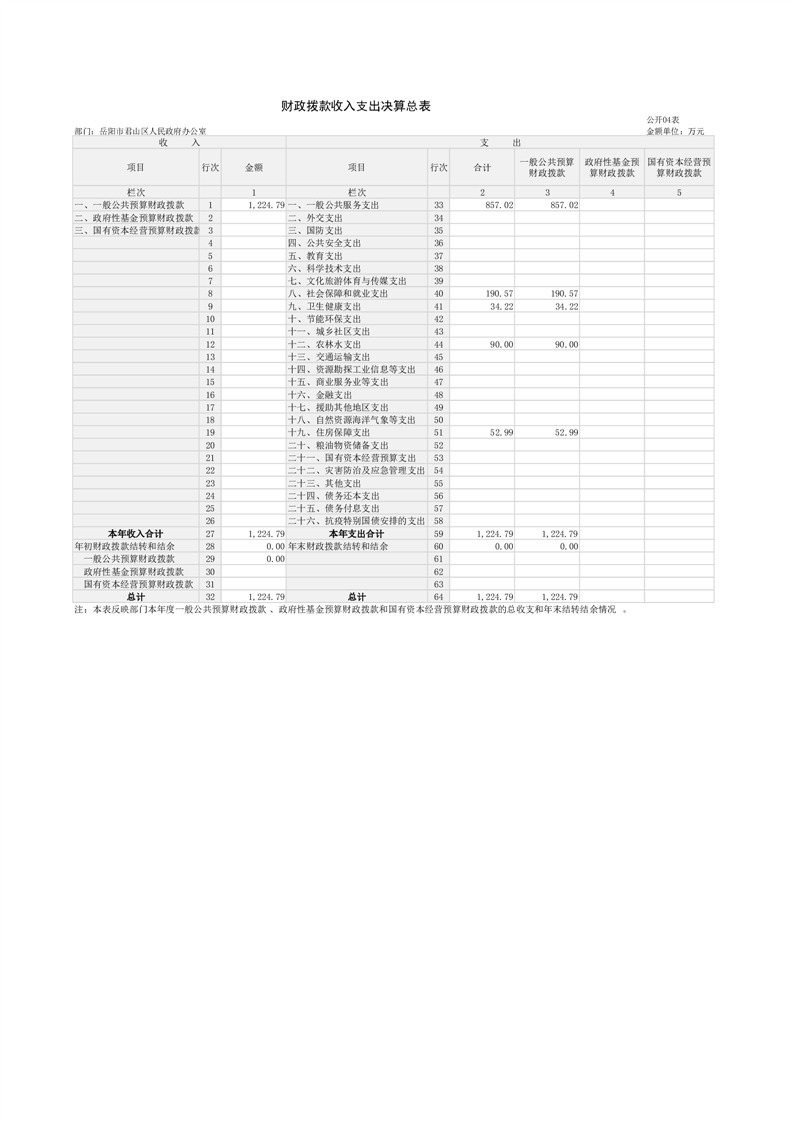 2024年度岳阳市君山区人民政府办公室(本级)部门决算公开