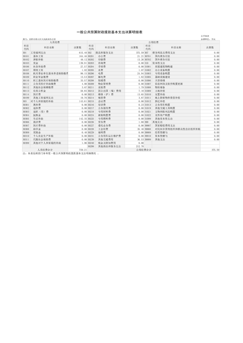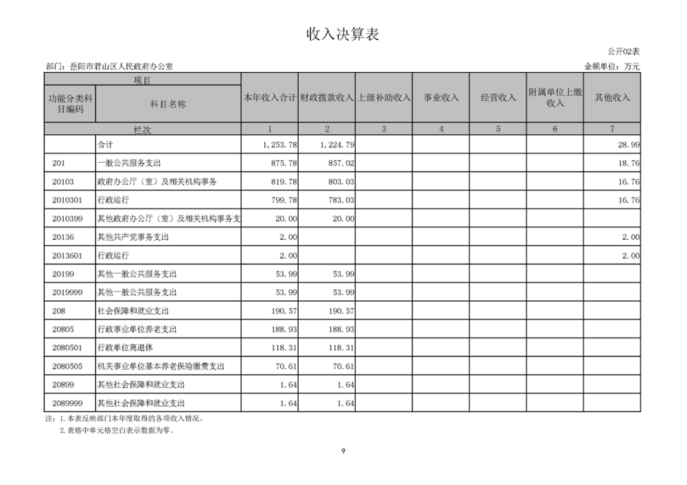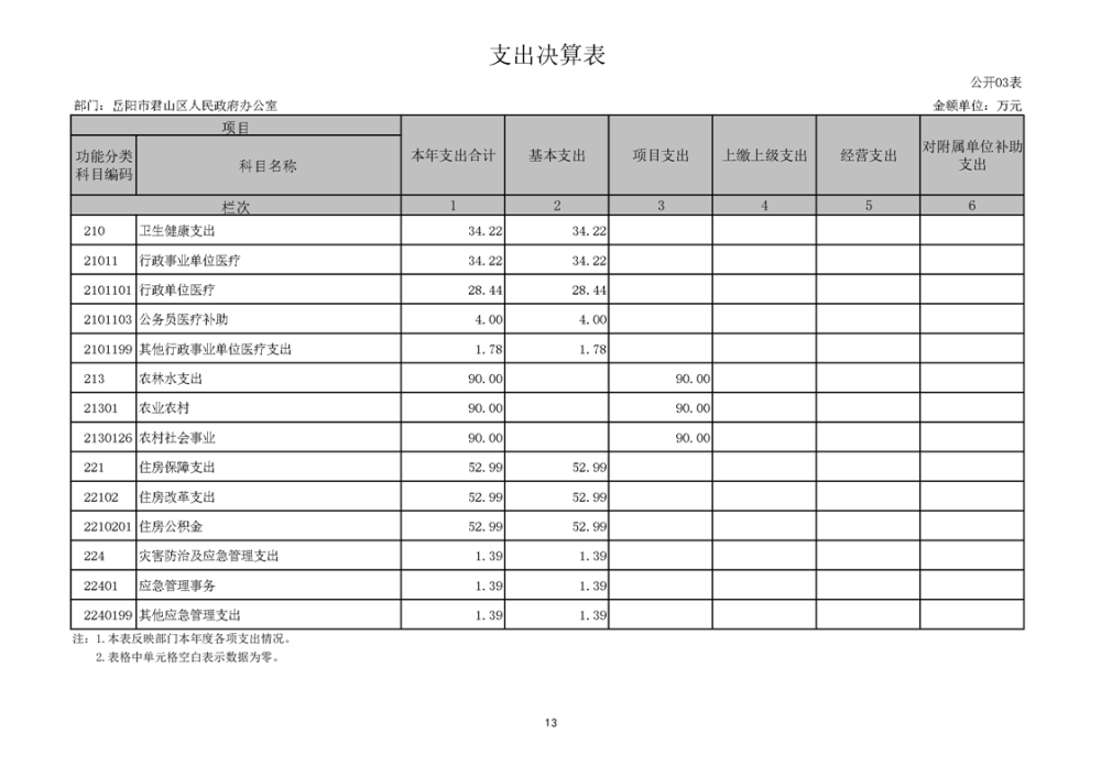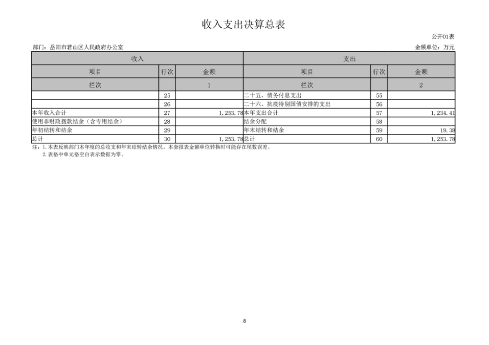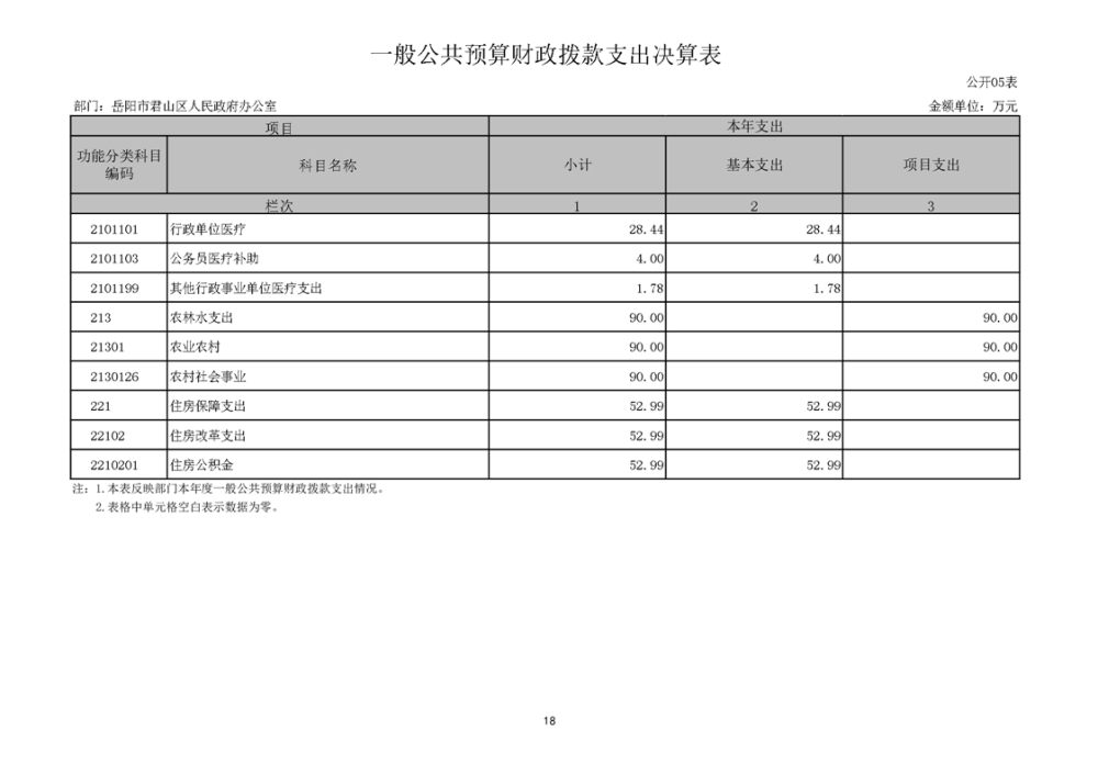 2024年度岳阳市君山区人民政府办公室(本级)部门决算公开