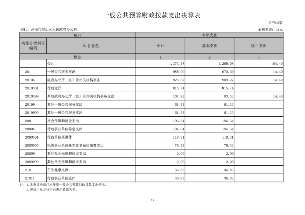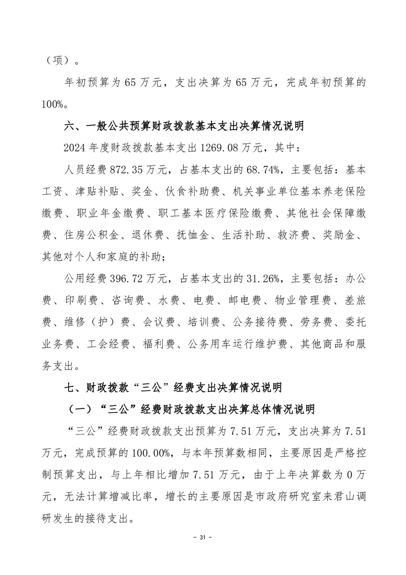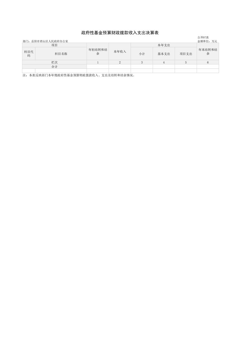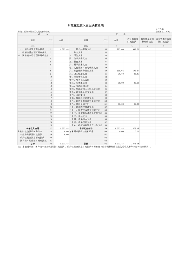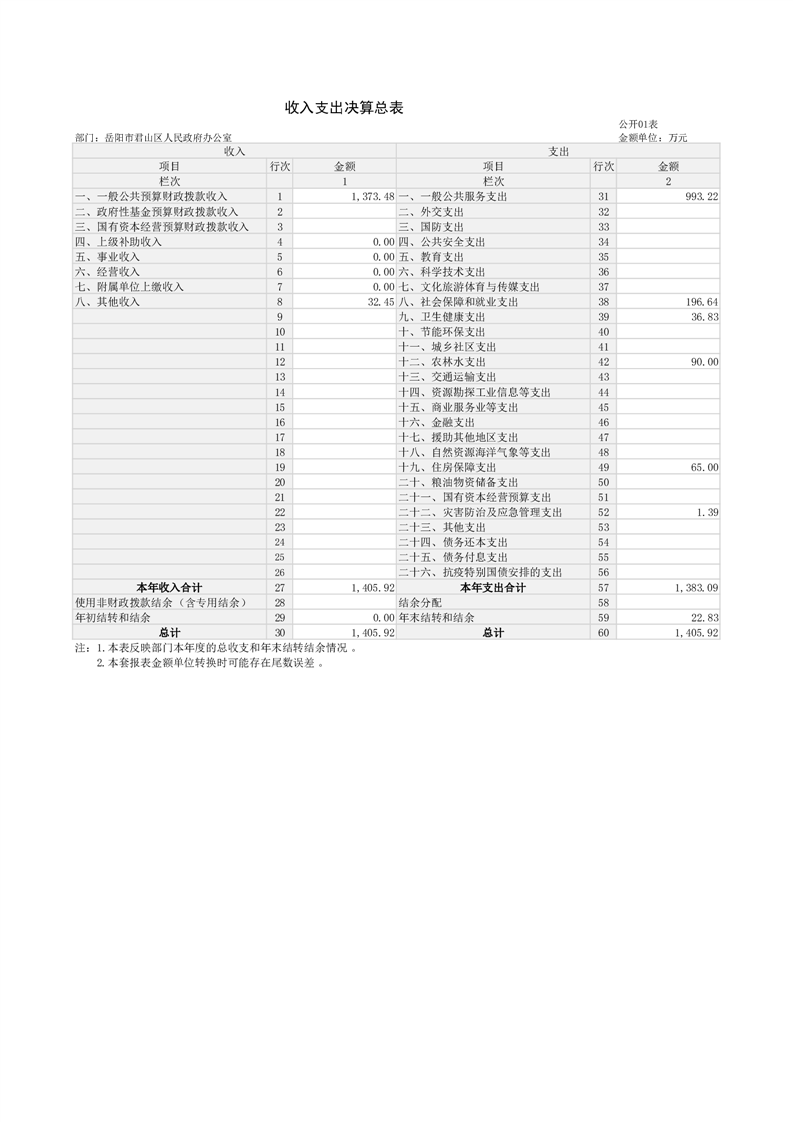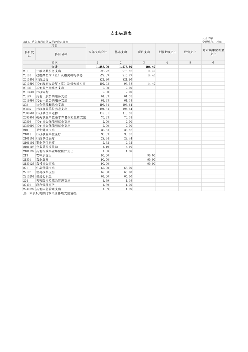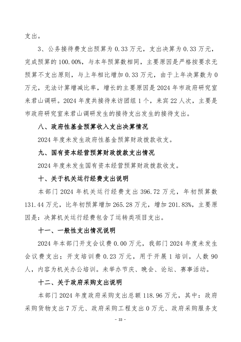 2024年度岳阳市君山区人民政府办公室(汇总)部门决算公开