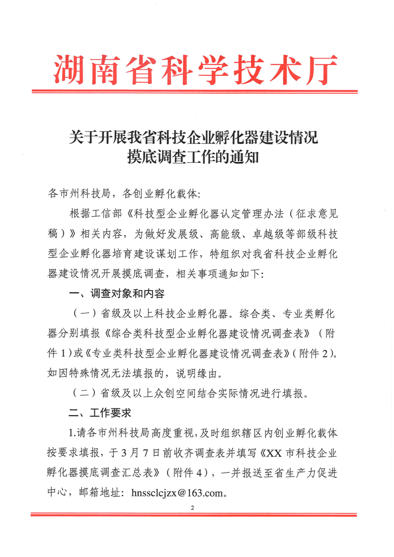 关于开展我省科技企业孵化器建设情况摸底调查工作的通知