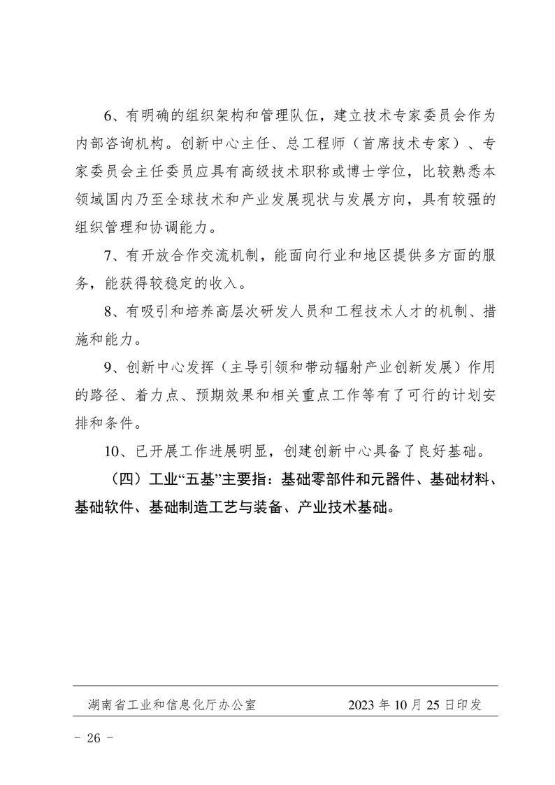 湖南省工业和信息化厅关于组织开展2023年湖南省制造业创新中心创建申报工作的通知