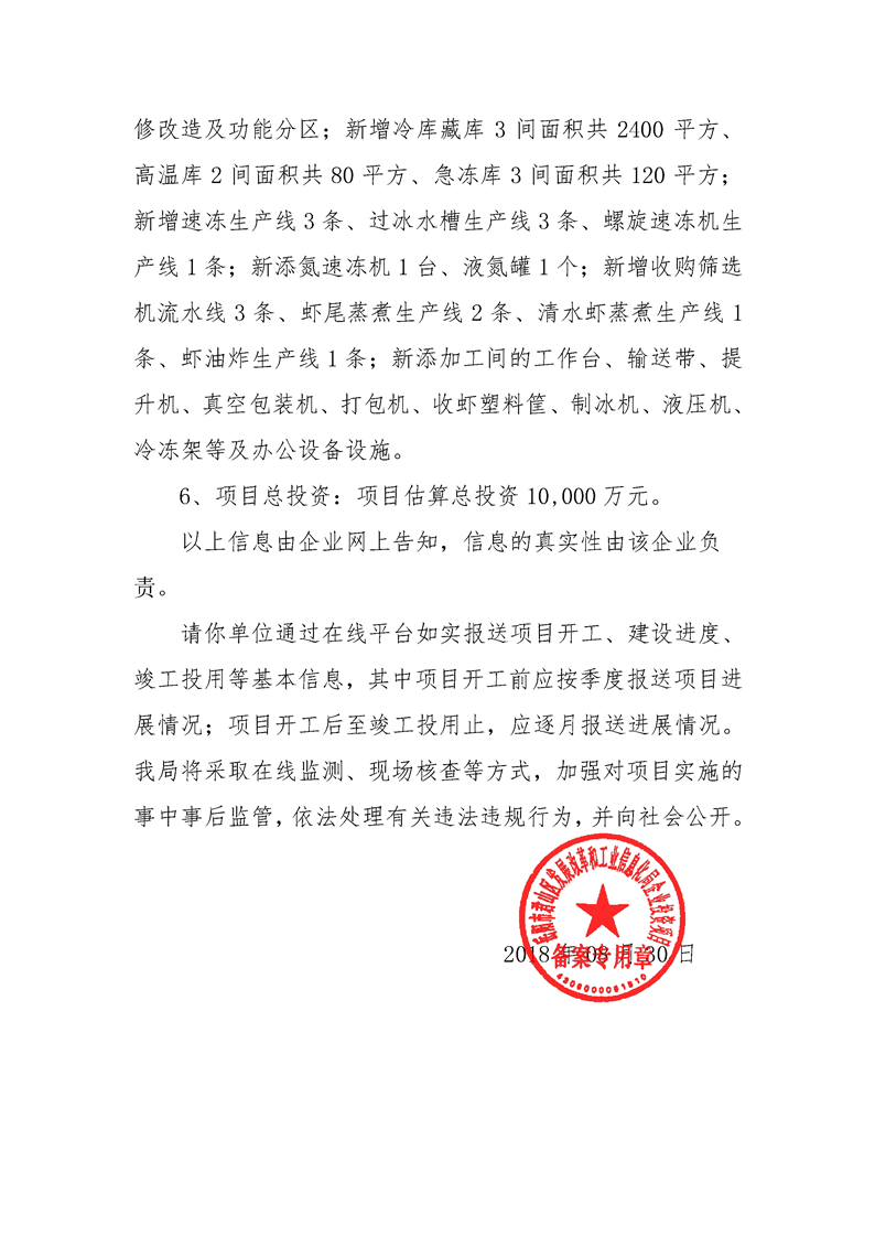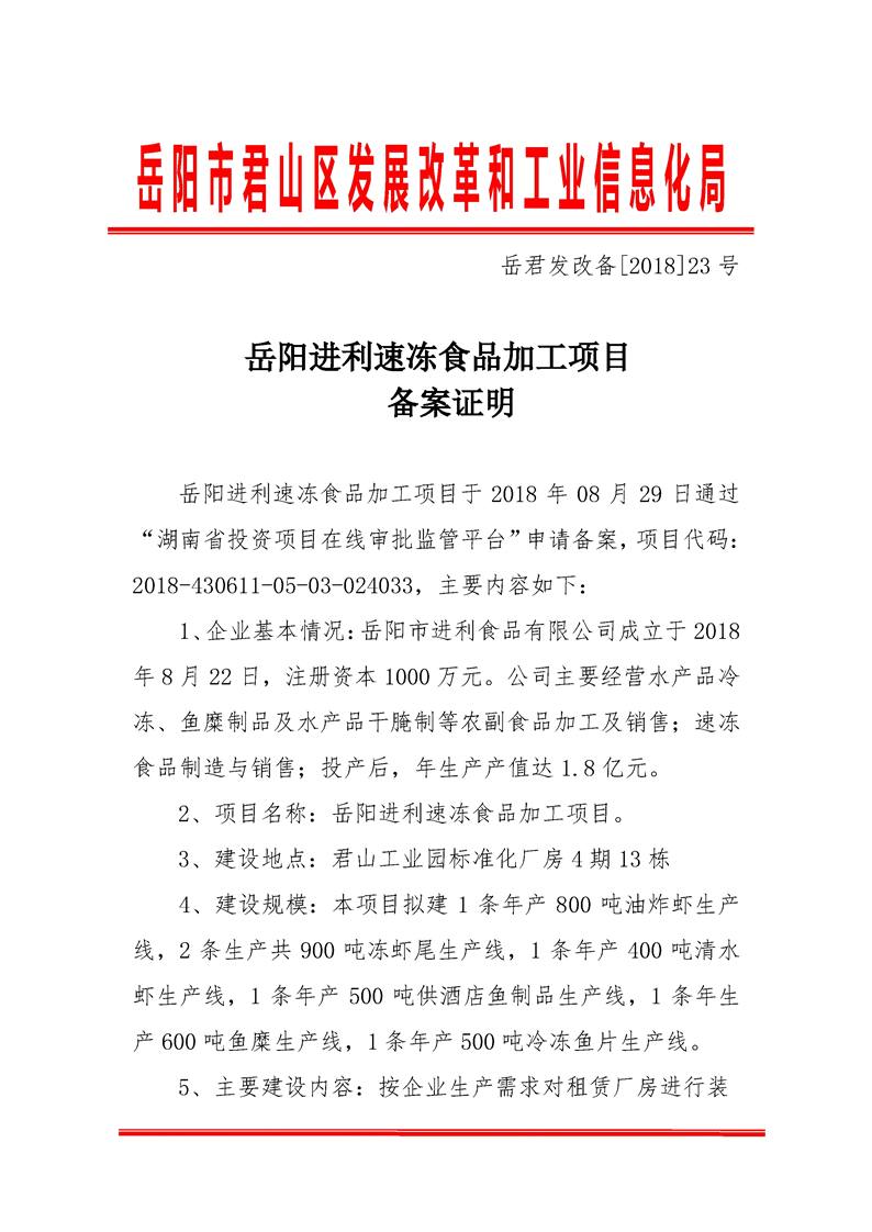 岳阳市进利速冻食品加工项目备案信息
