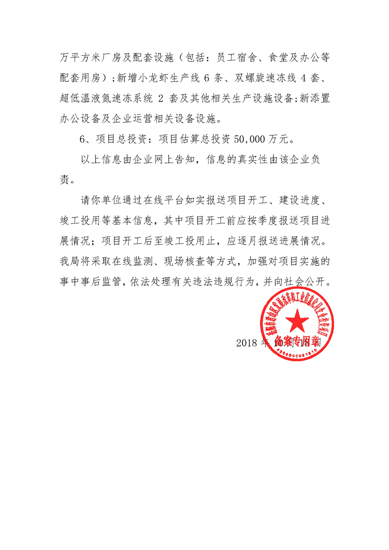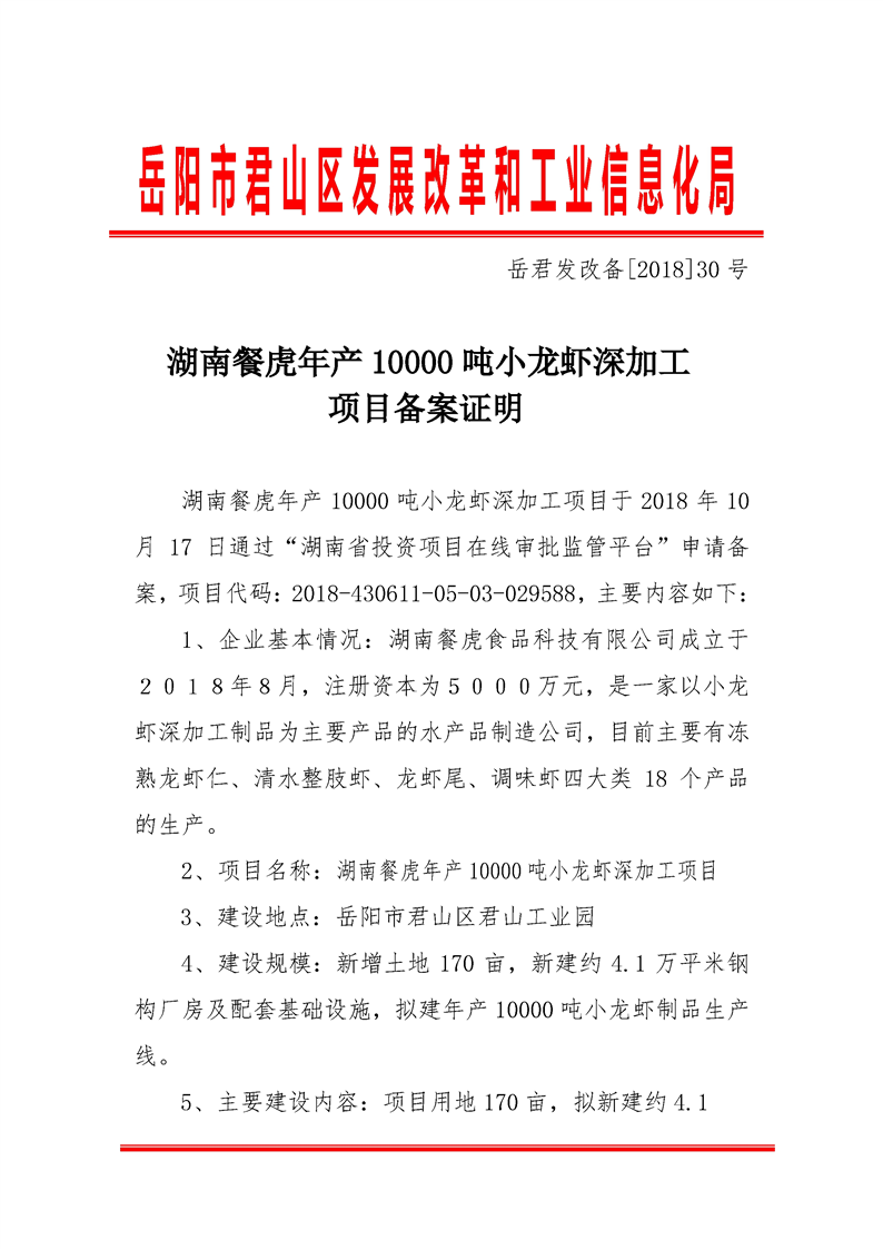 餐虎年产10000吨小龙虾深加工项目备案信息
