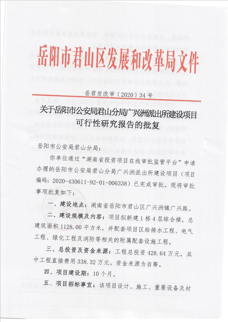 岳阳市公安君山分局广兴洲派出所建设项目审批信息