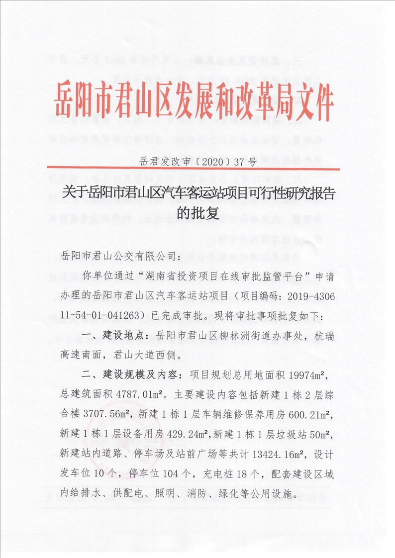 岳阳市君山区汽车客运站项目审批信息