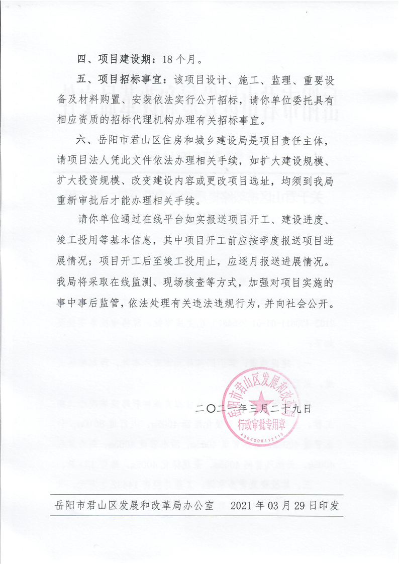 关于君山区柳毅路提质改造建设项目二期工程可行性研究报告的批复