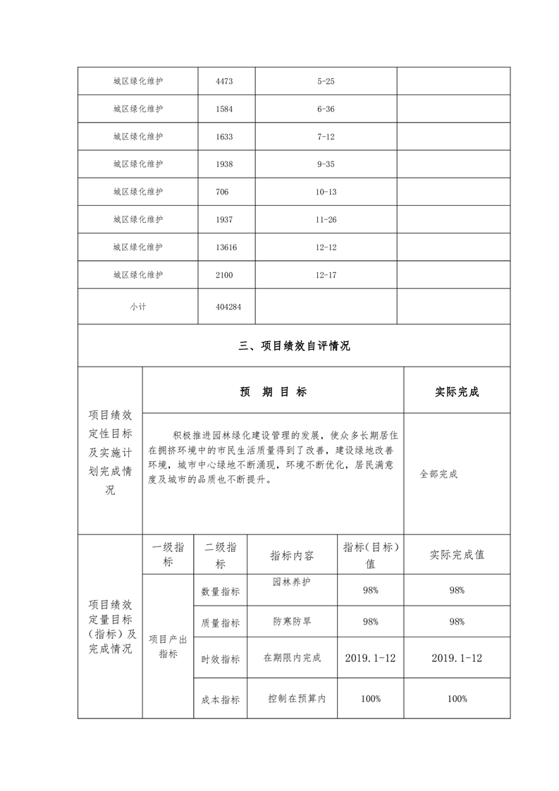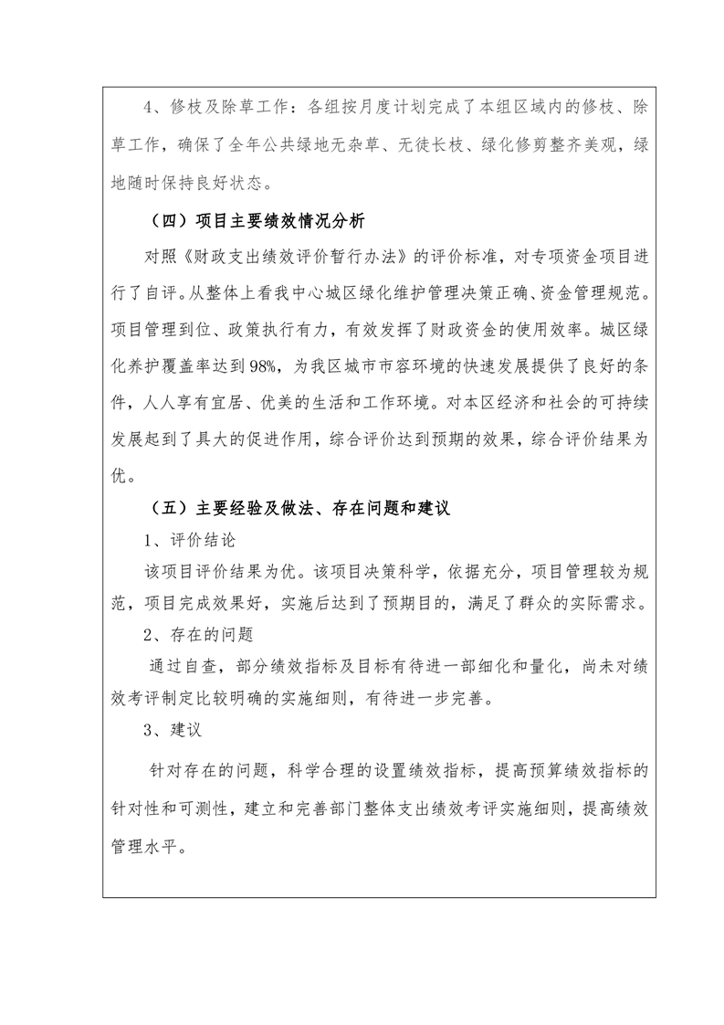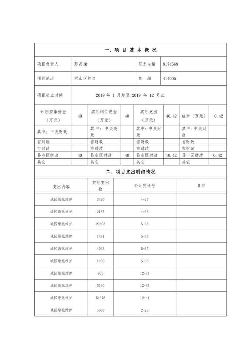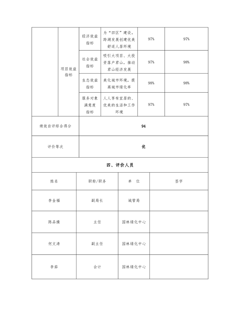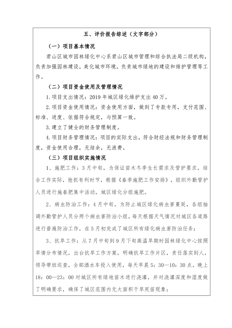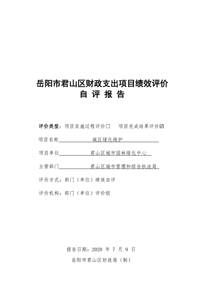 君山区城市园林绿化中心2019年度财政项目支出绩效自评报告