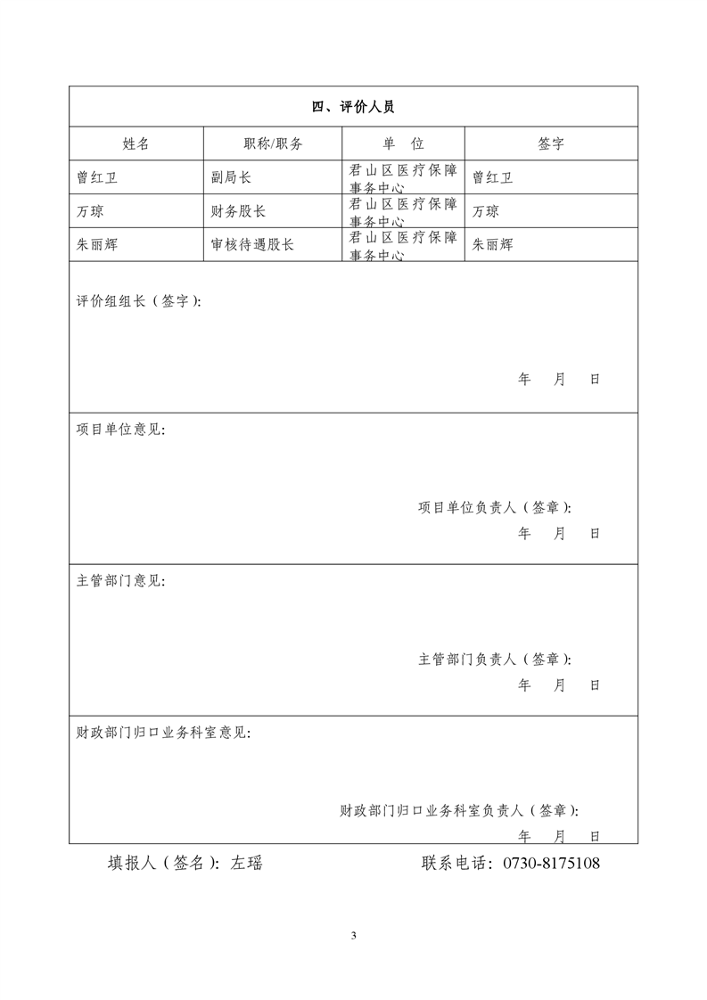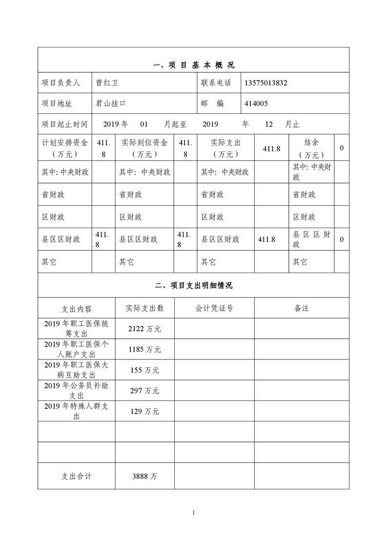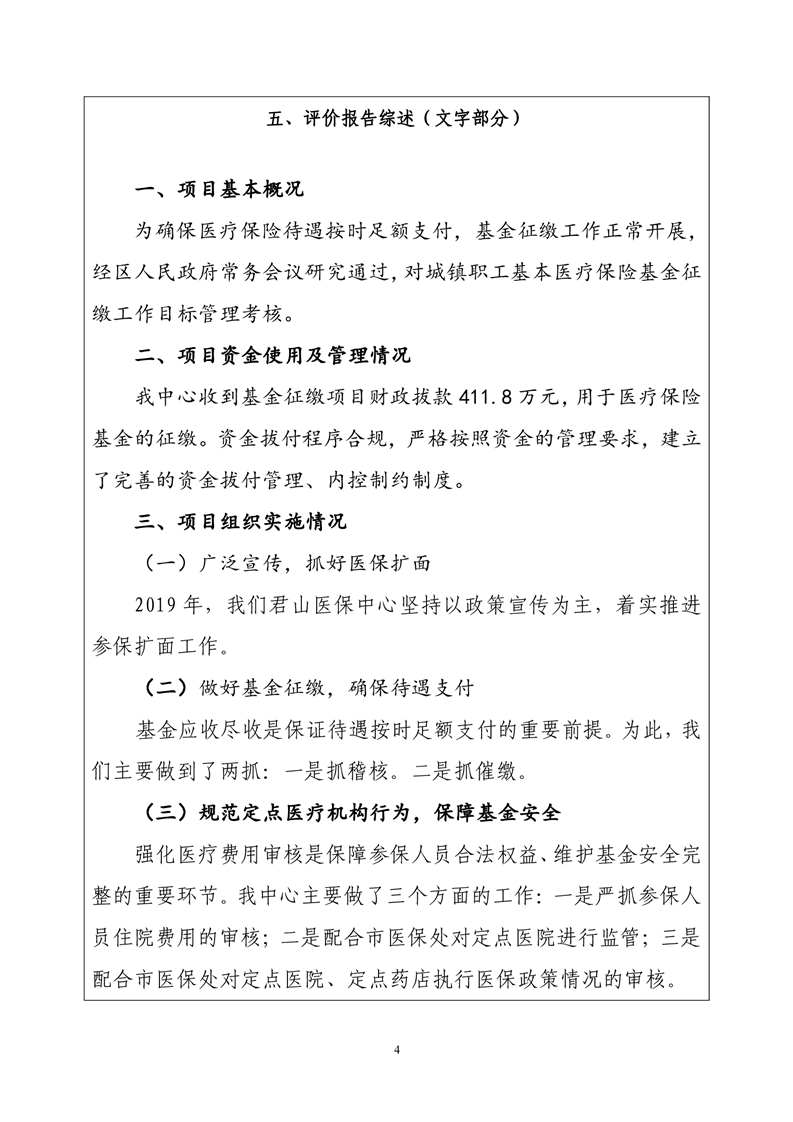 岳阳市君山区医疗保障局2019年度财政项目支出绩效自评报告