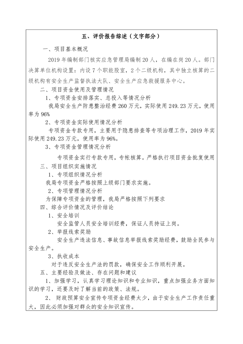 岳阳市君山区应急管理局2019年度财政项目支出绩效自评报告
