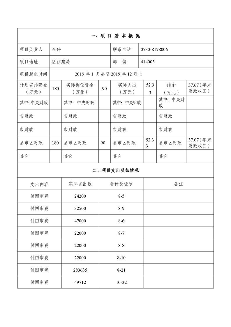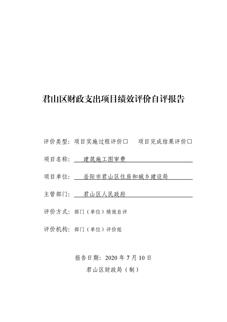 岳阳市君山区住房和城乡建设局2019年度财政项目支出绩效自评报告