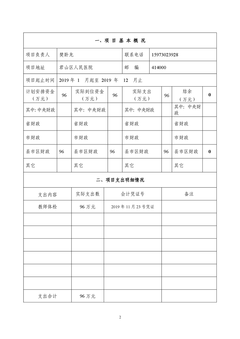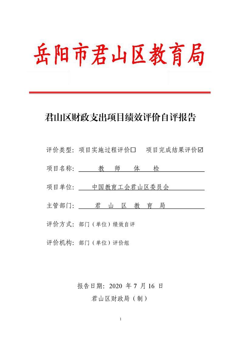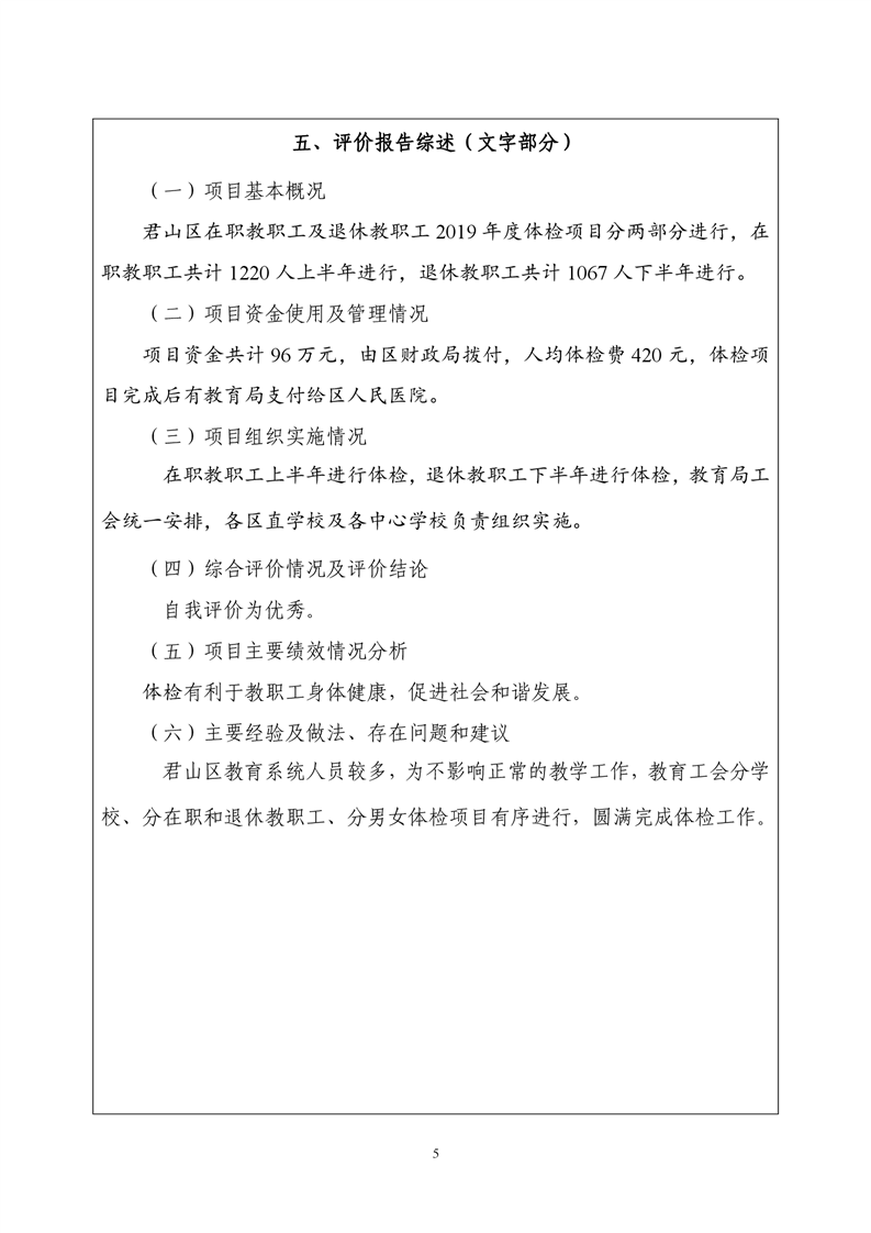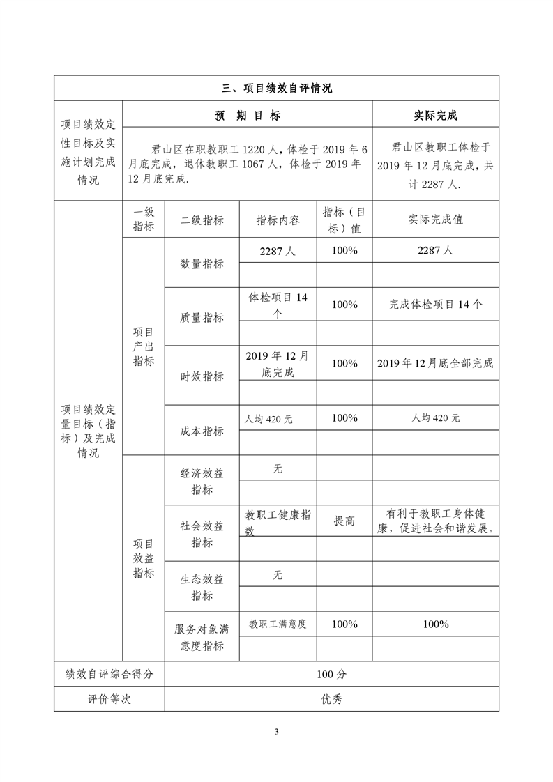 2019年度教育局教师体检费财政项目支出绩效自评报告