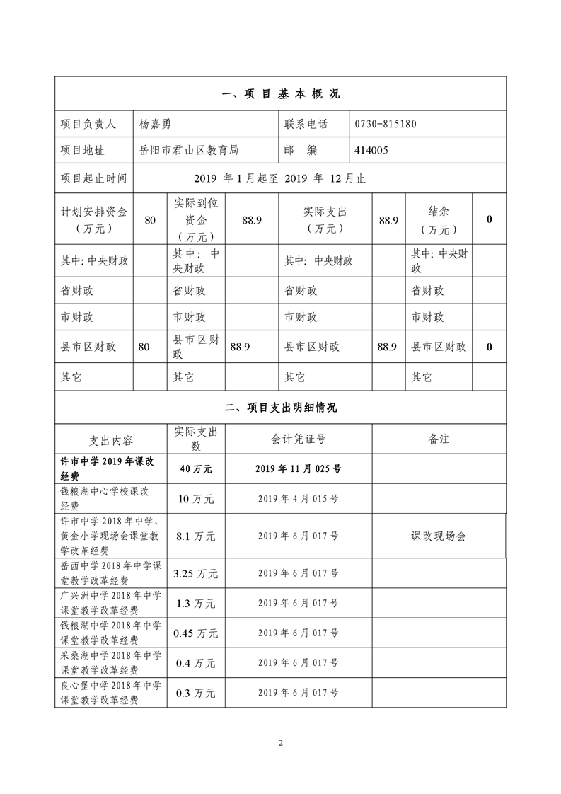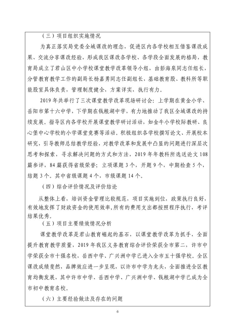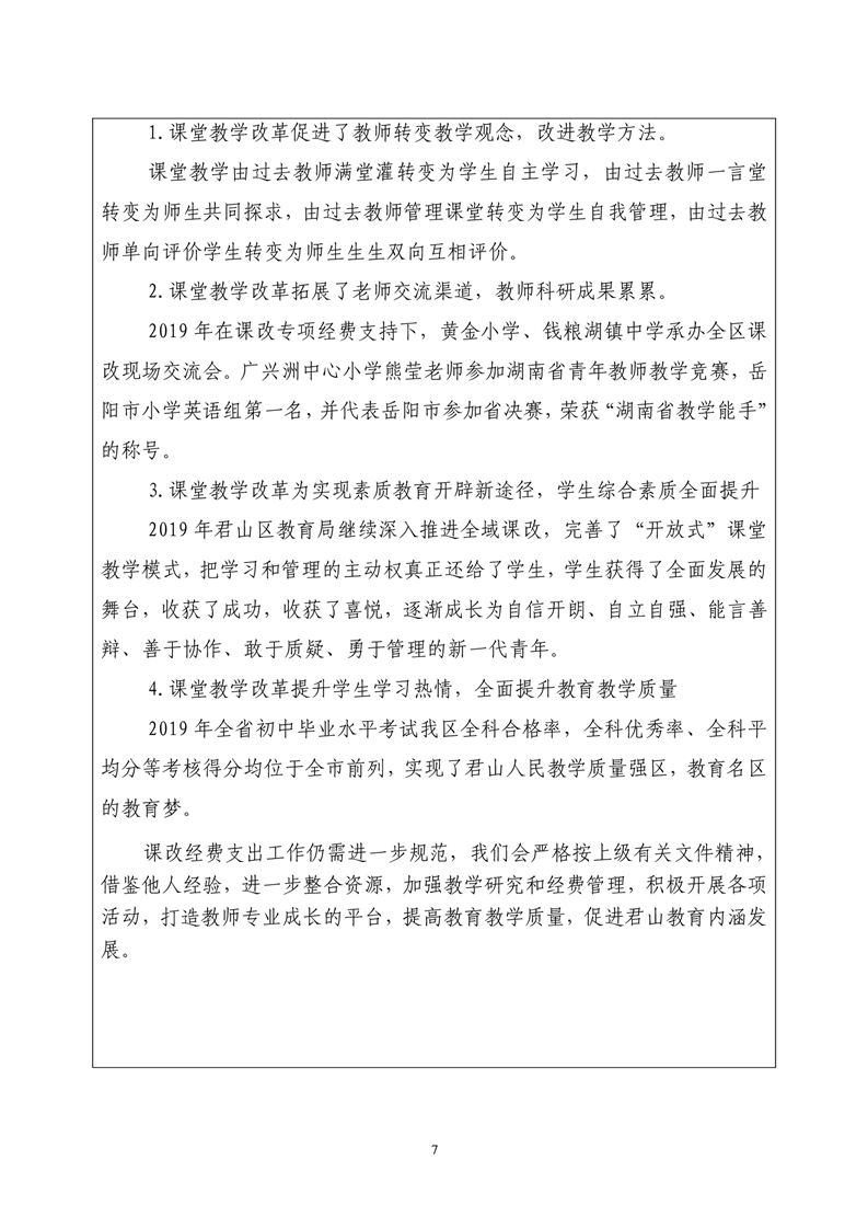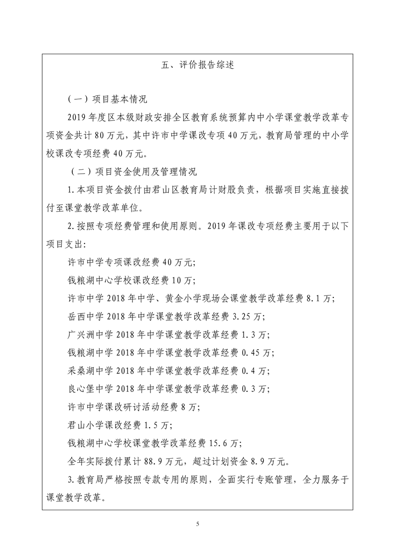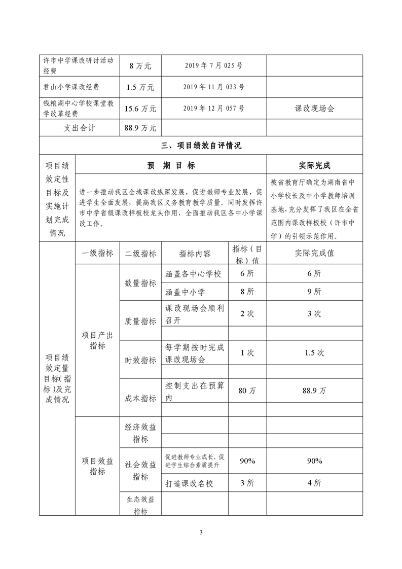 2019年度教育局课改经费财政项目支出绩效自评报告