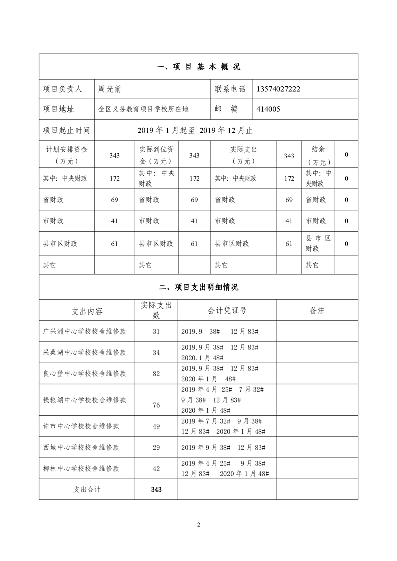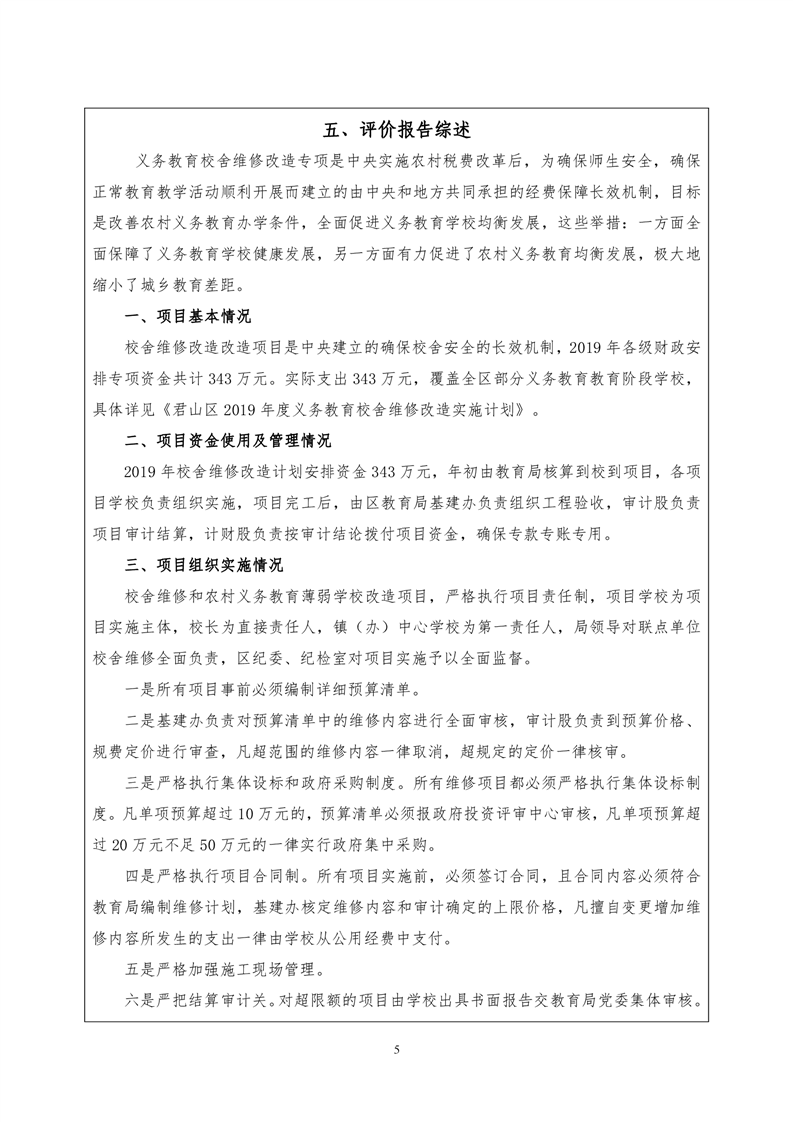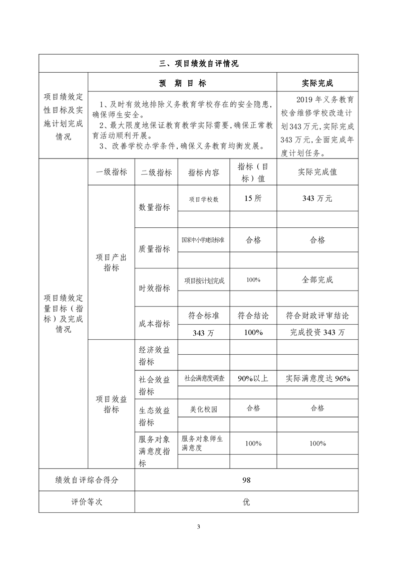 2019年度教育局校舍维修改造财政项目支出绩效自评报告