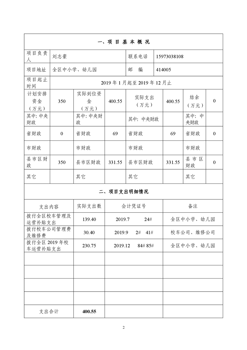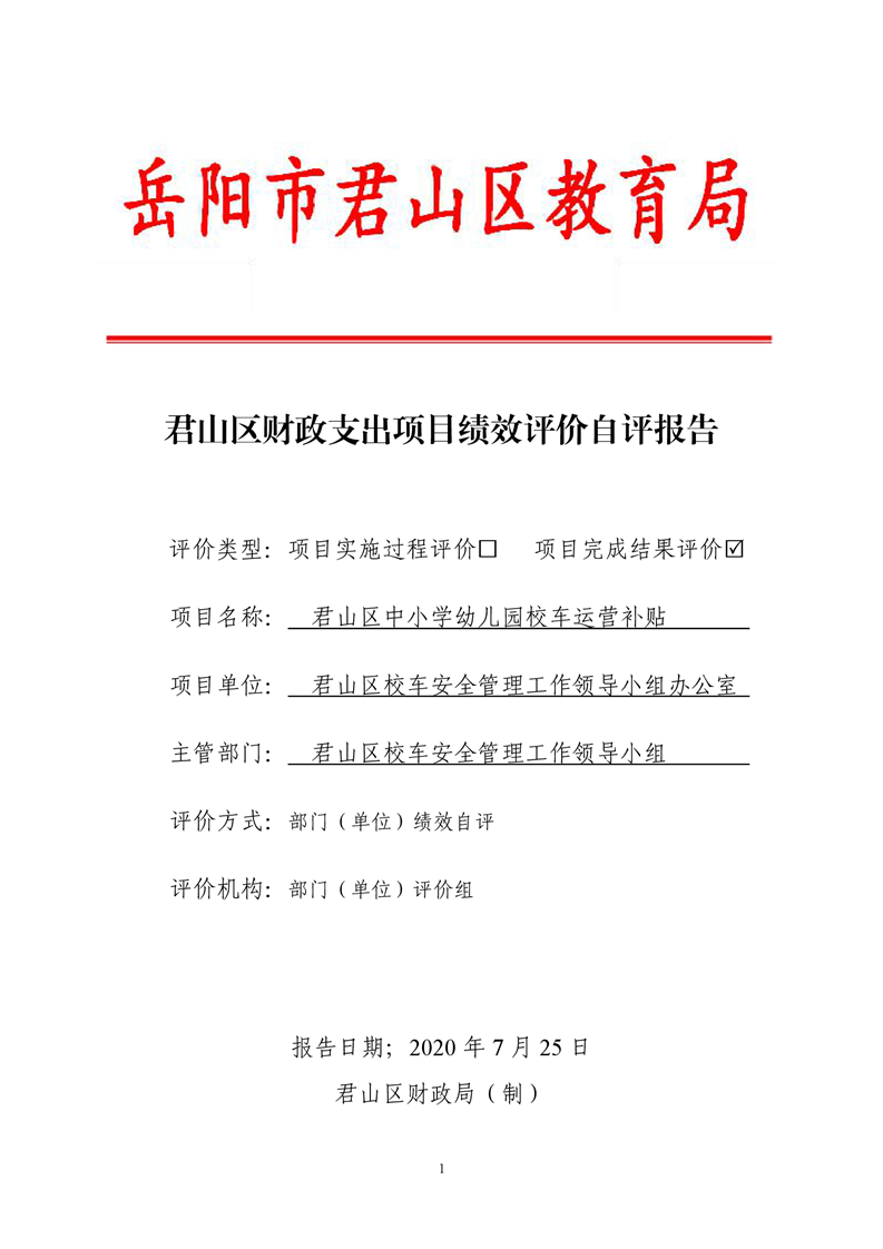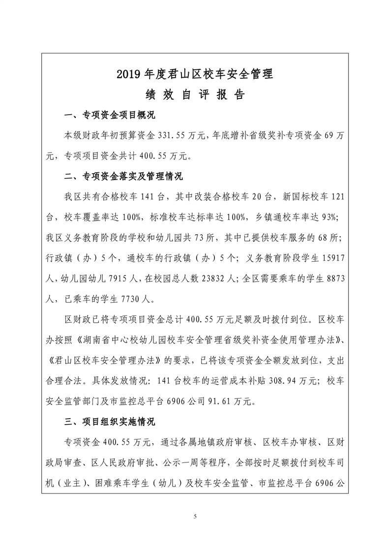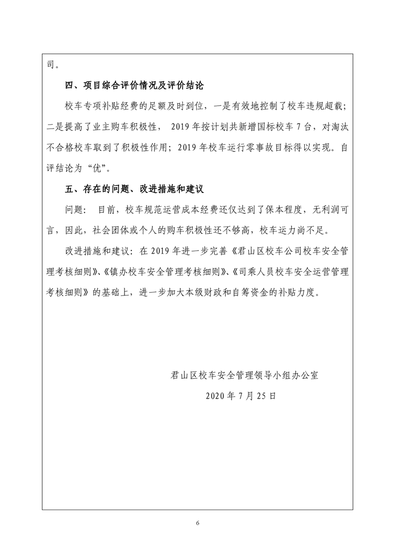 2019年度教育局中小学幼儿园校车运营补贴财政项目支出绩效自评报告