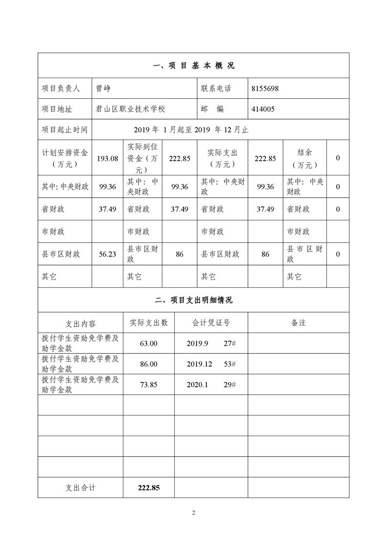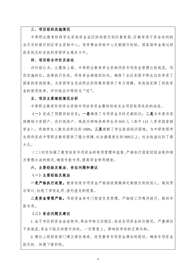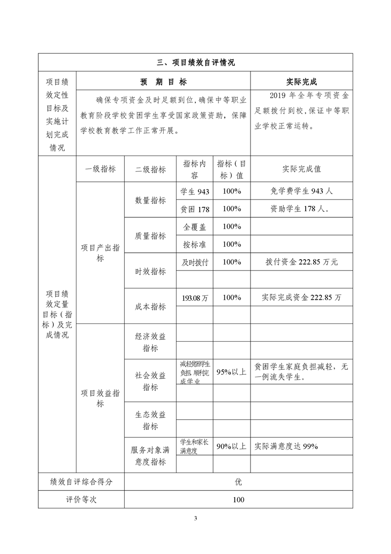 2019年度教育局中职免学费及助学金财政项目支出绩效自评报告