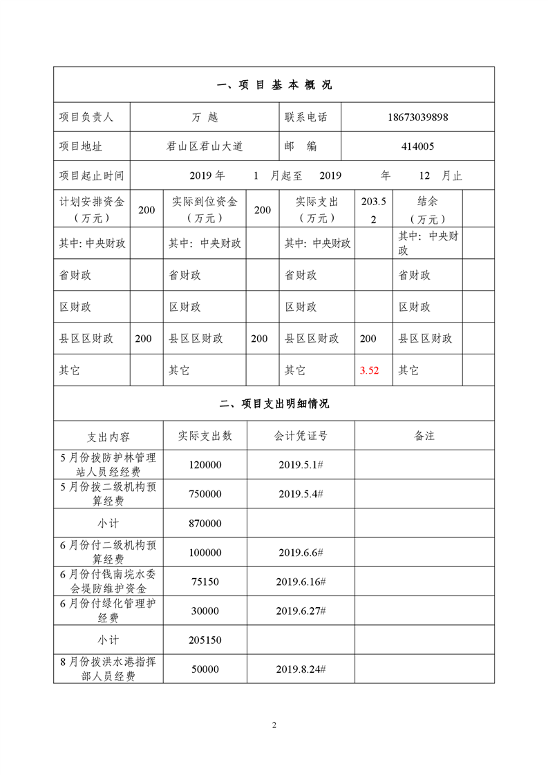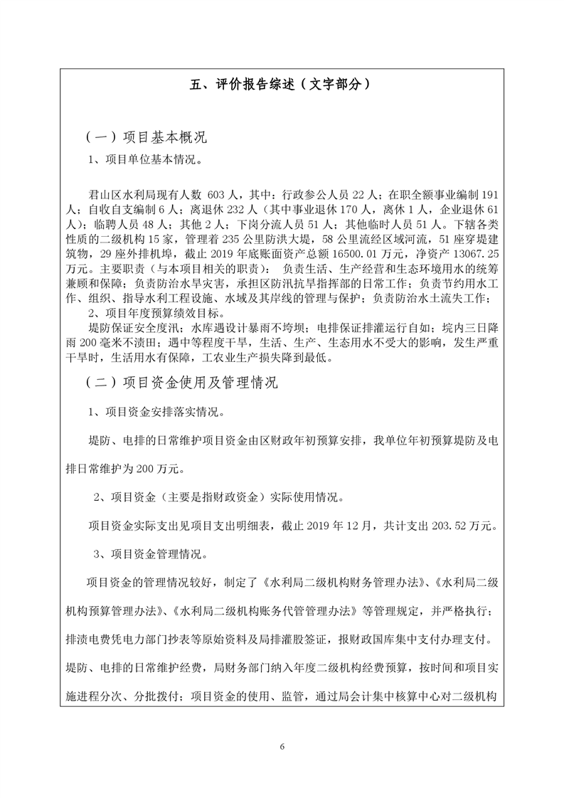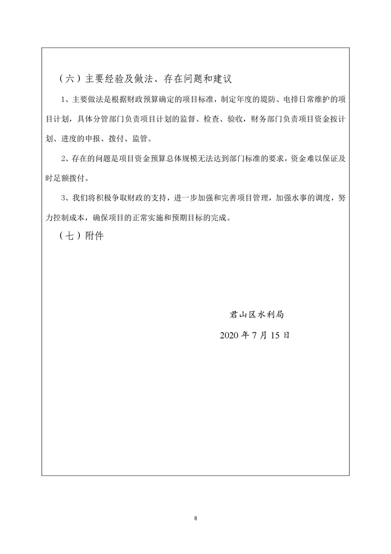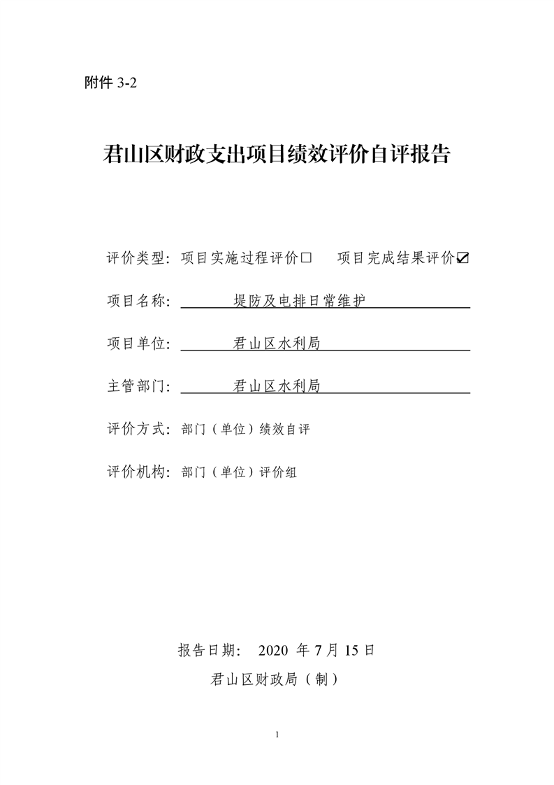 2019年度君山水利局堤防维护及电排单位绩效评价报