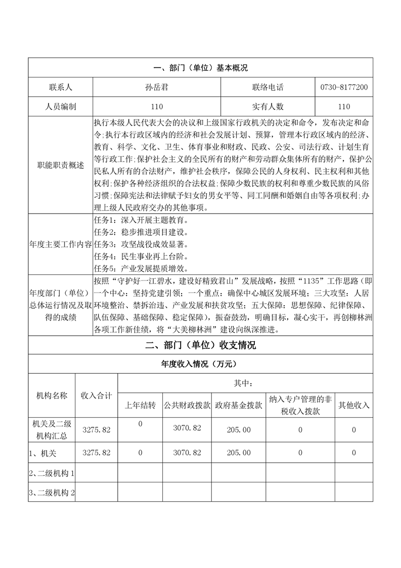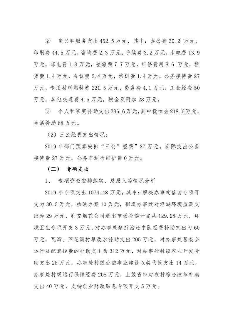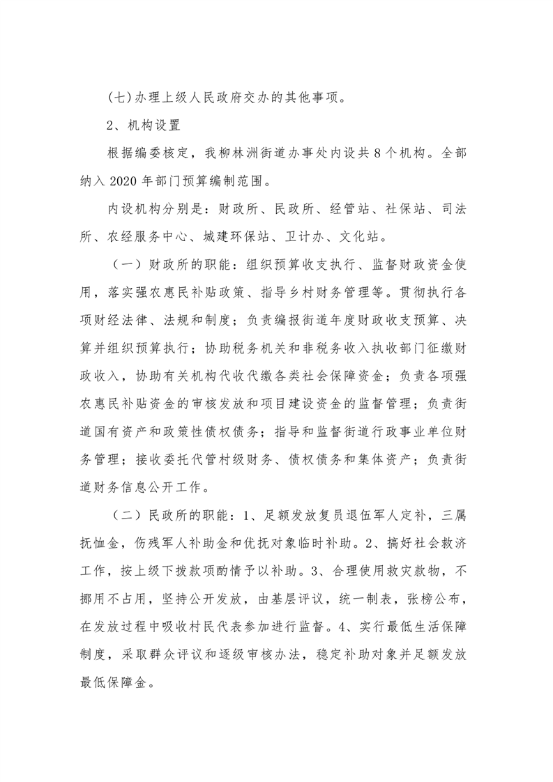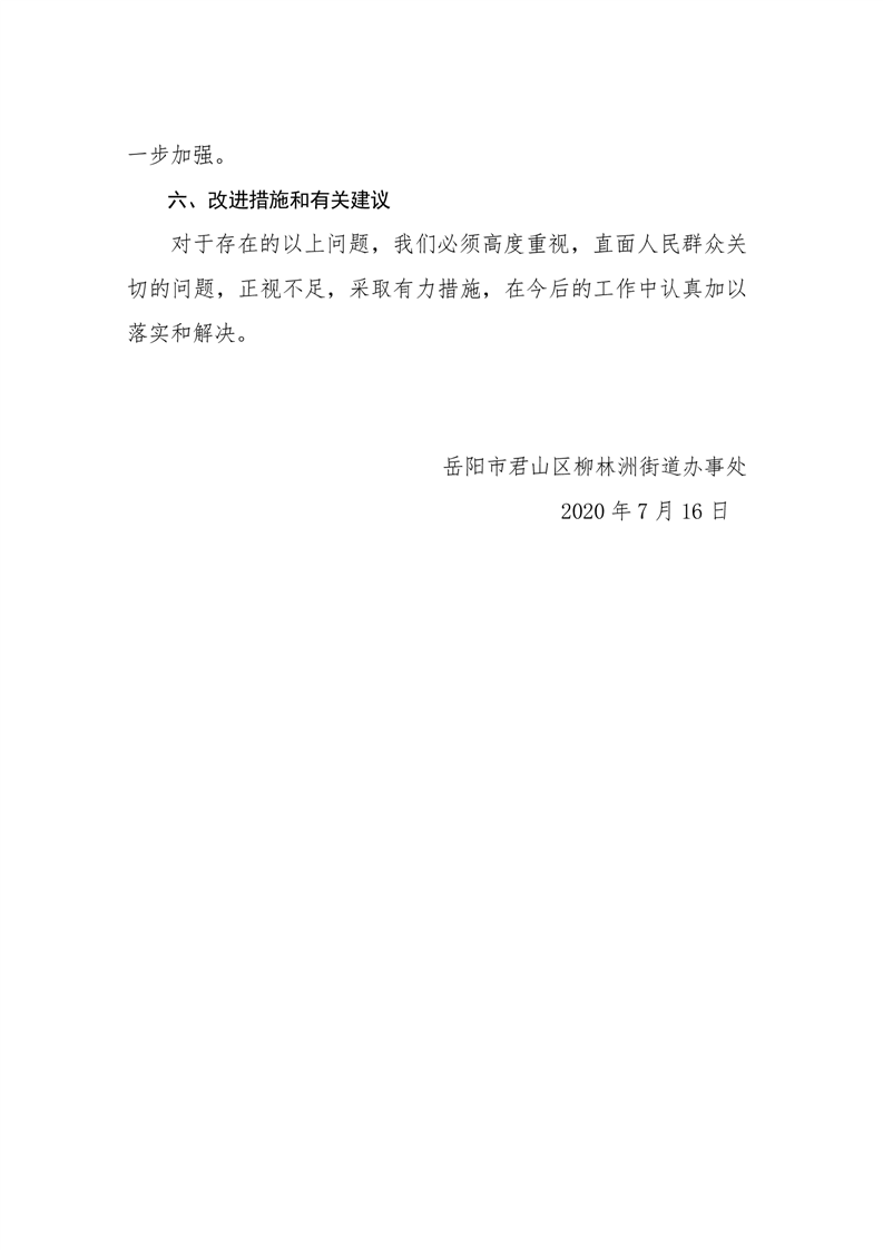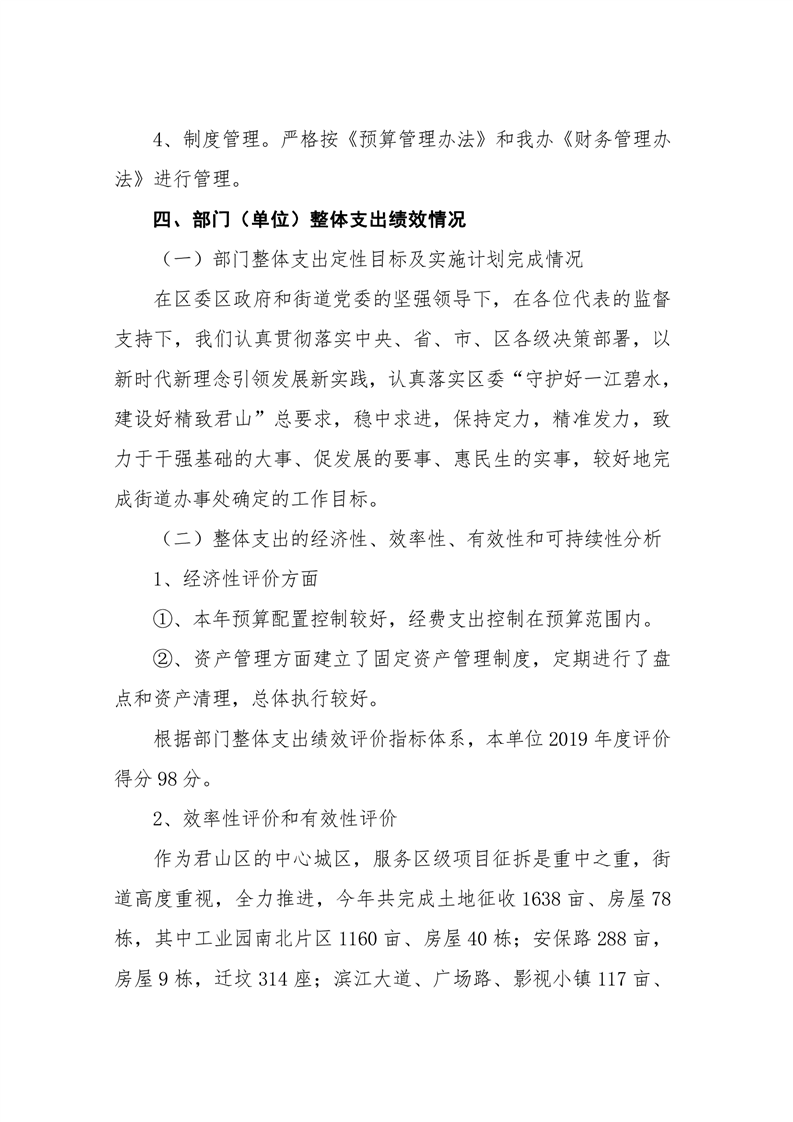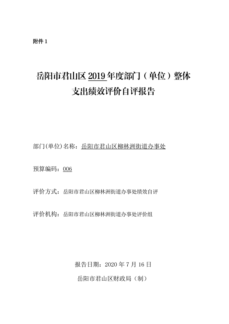 君山区2019年度柳林洲街道办事处整体支出绩效评价自评报告