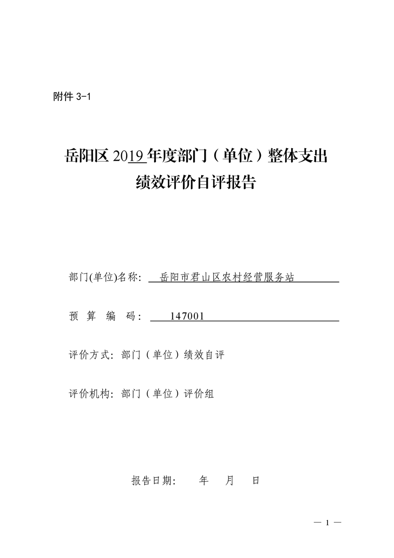 君山区2019年度农村经营服务站整体支出绩效评价自评报告