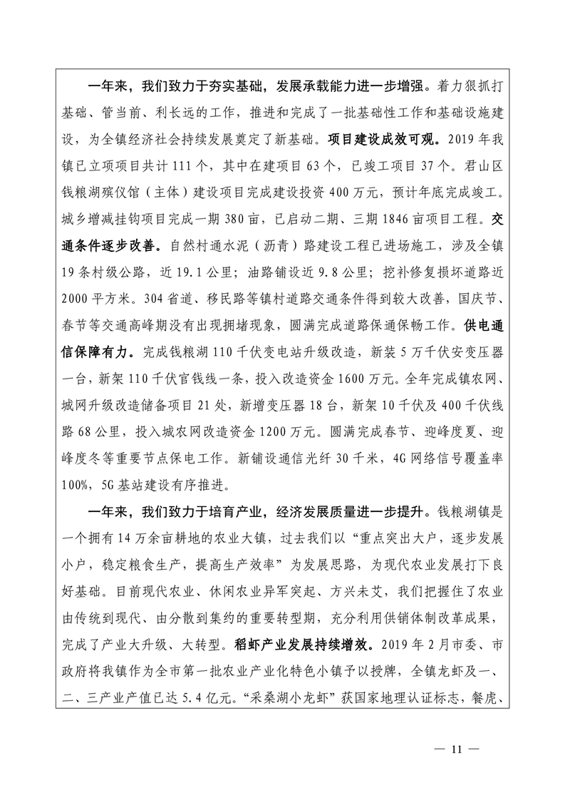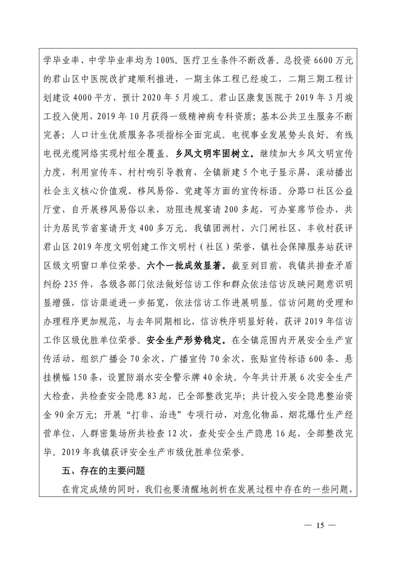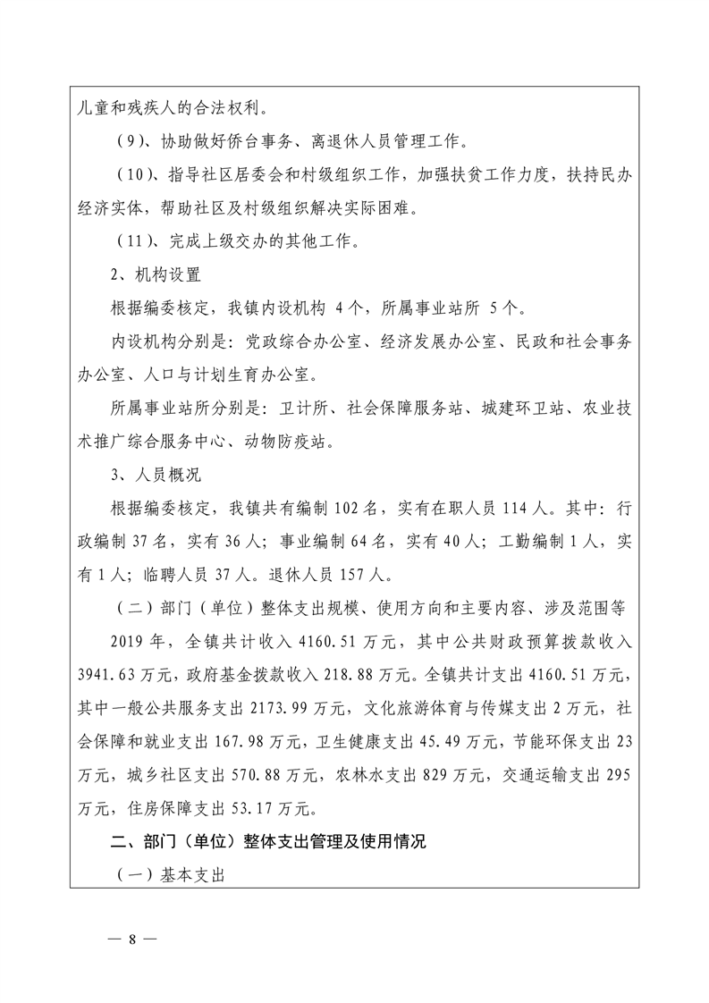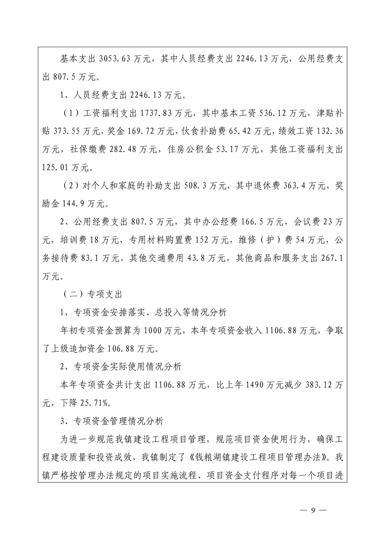 君山区2019年度钱粮湖镇整体支出绩效评价自评报告