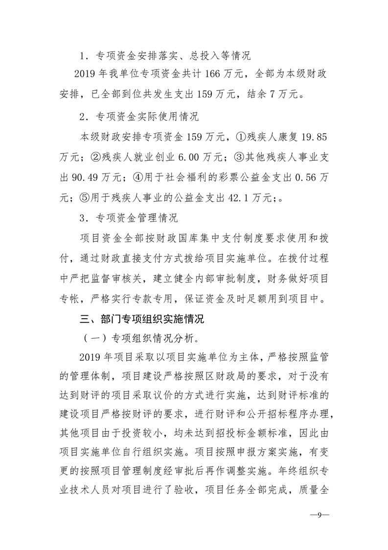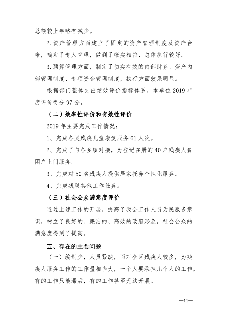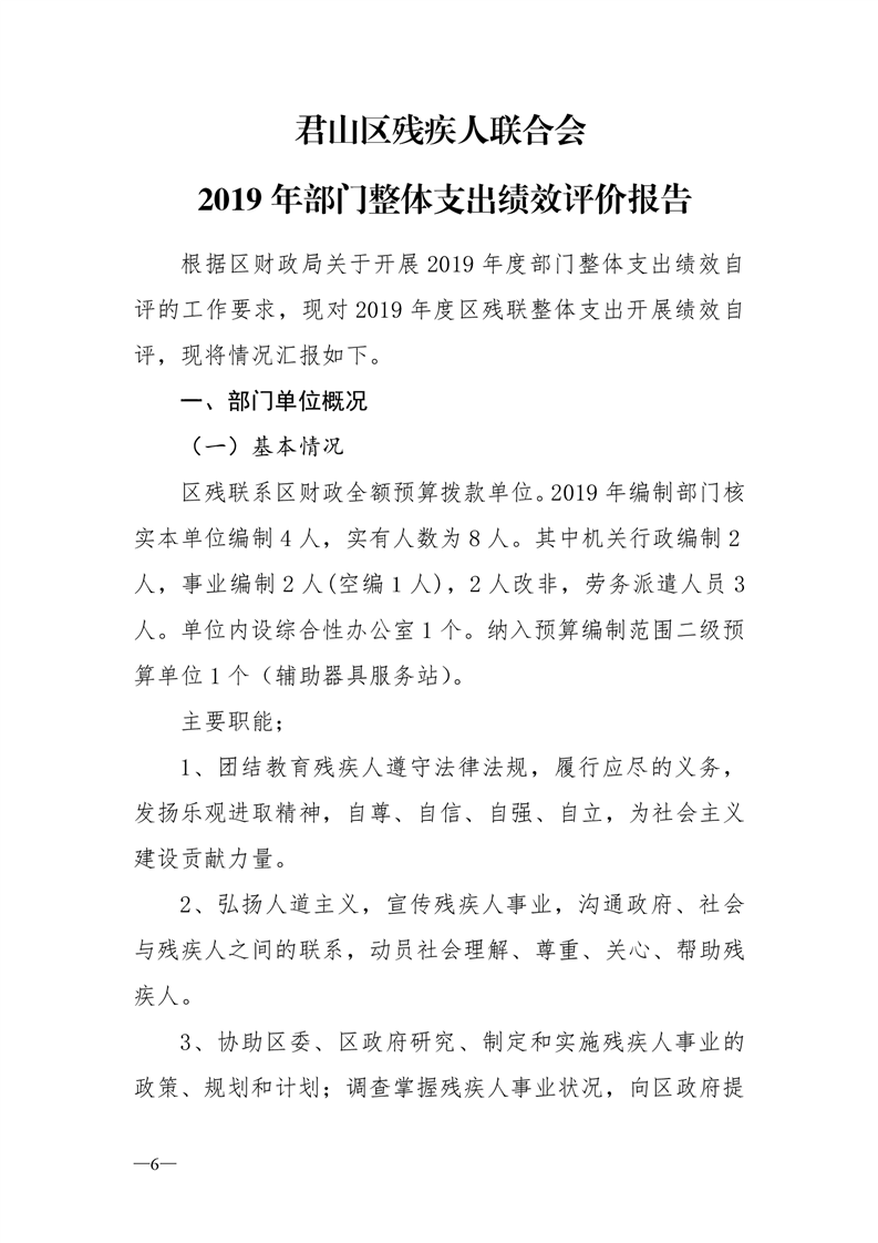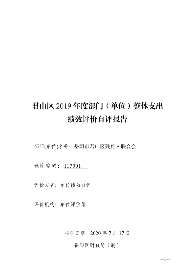 君山区2019年度残疾人联合会整体支出绩效评价自评报告