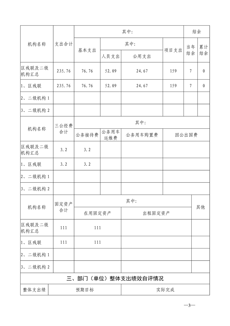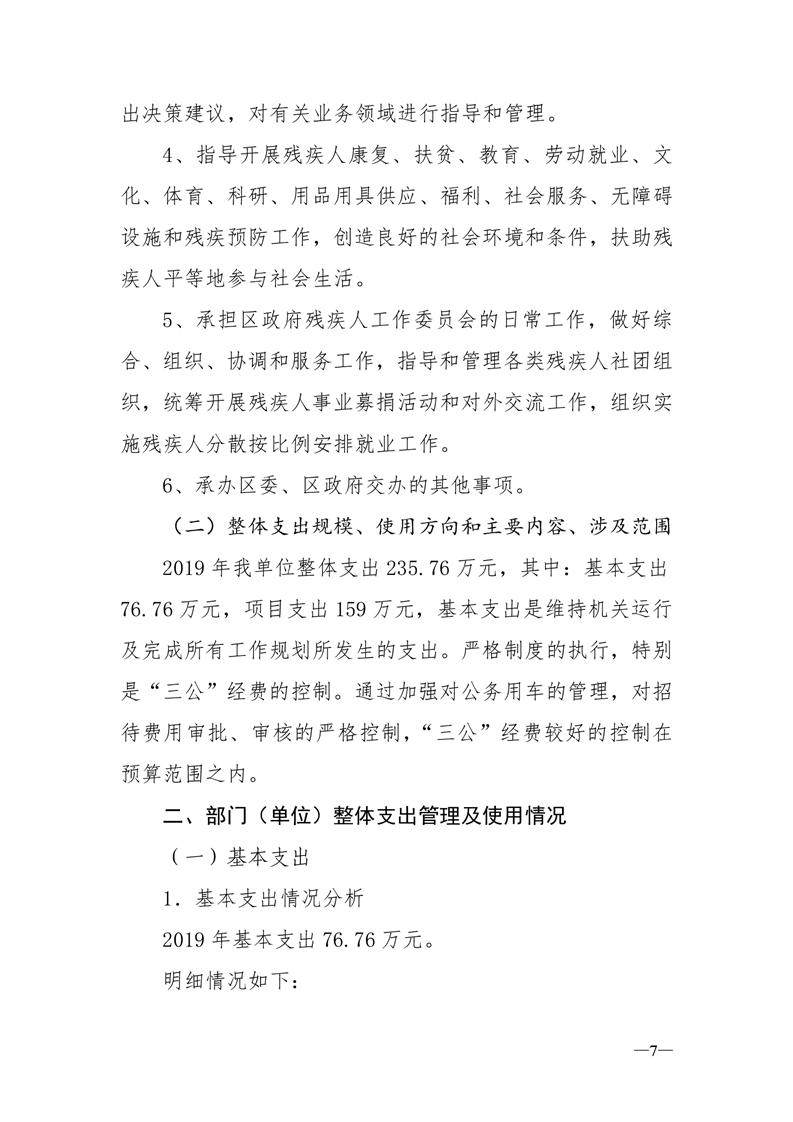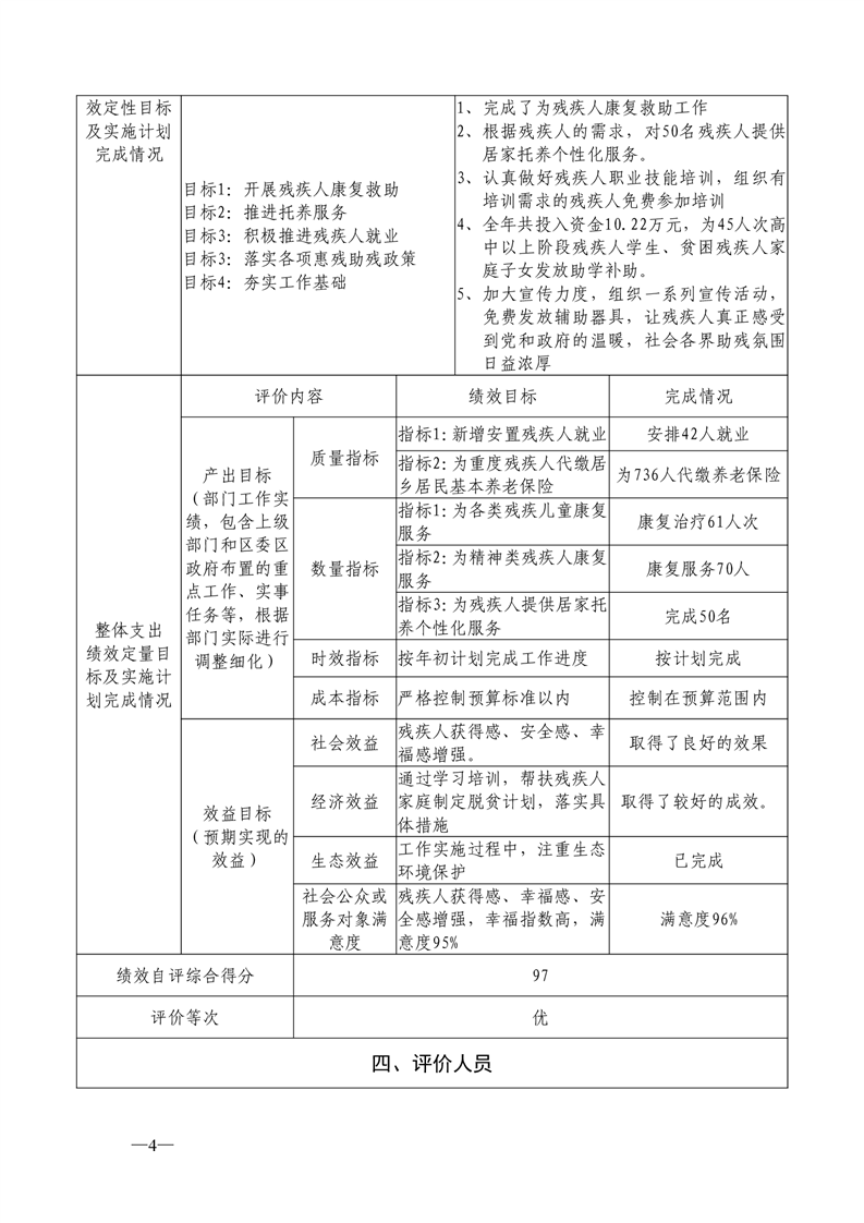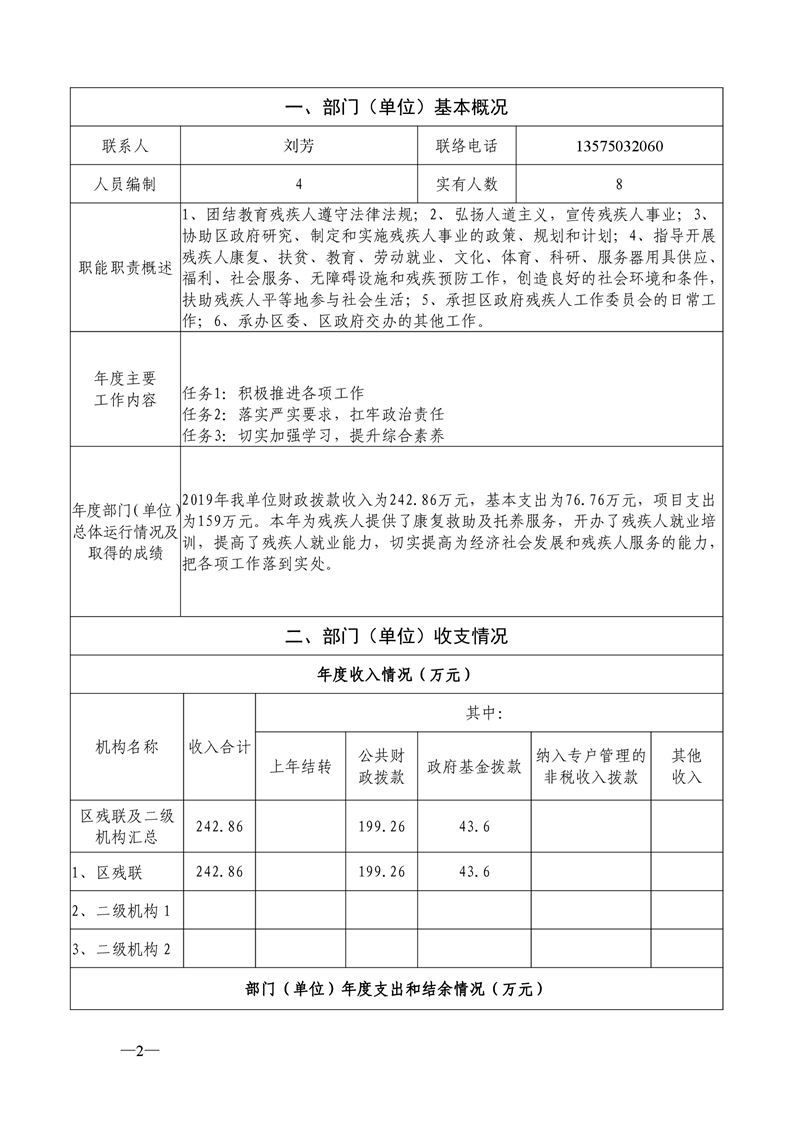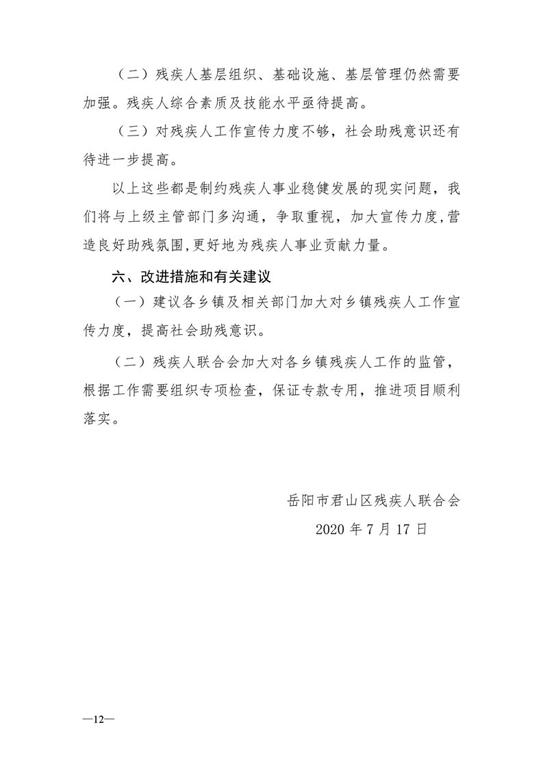 君山区2019年度残疾人联合会整体支出绩效评价自评报告