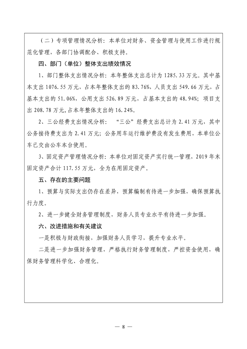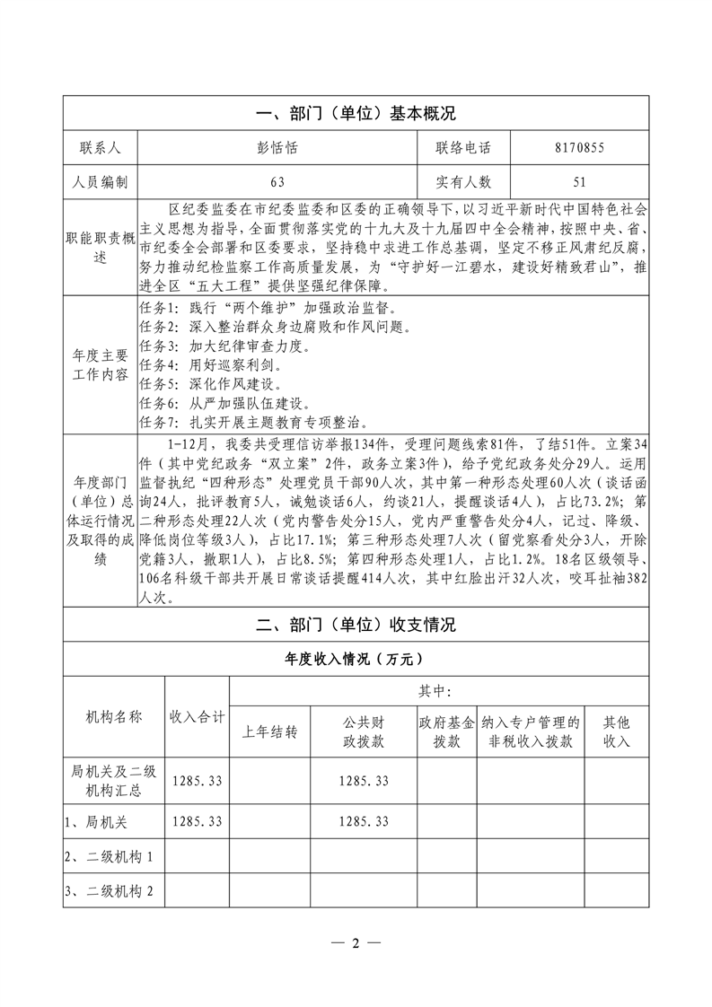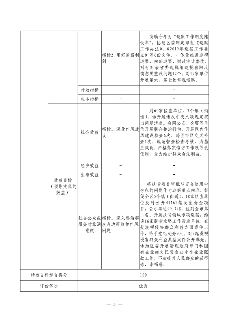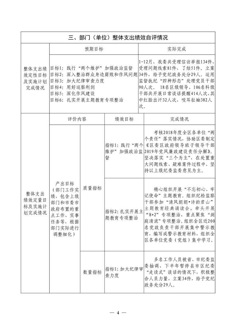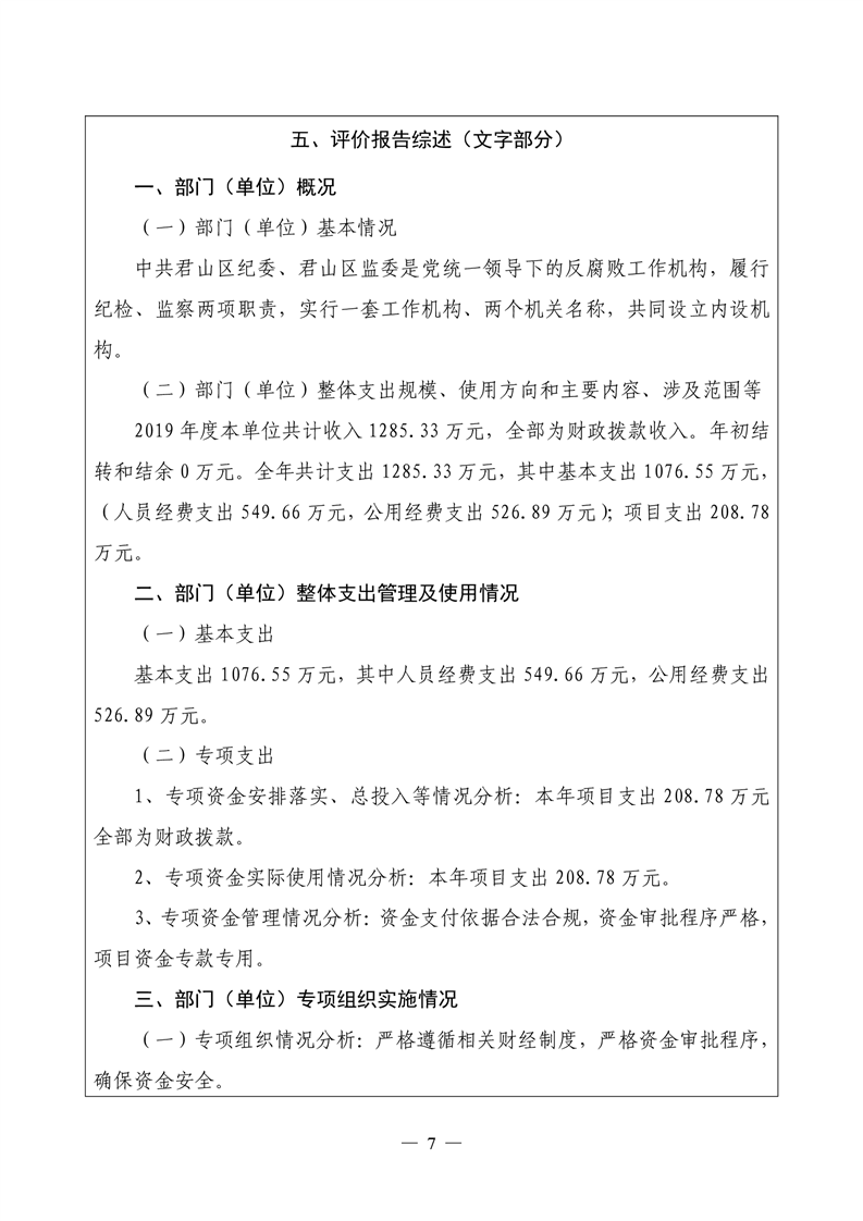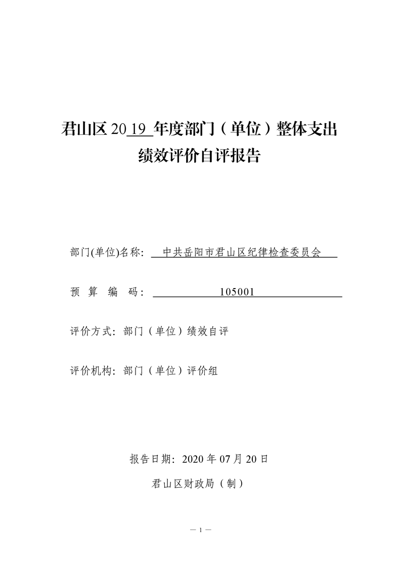 君山区2019年度纪委整体支出绩效评价自评报告