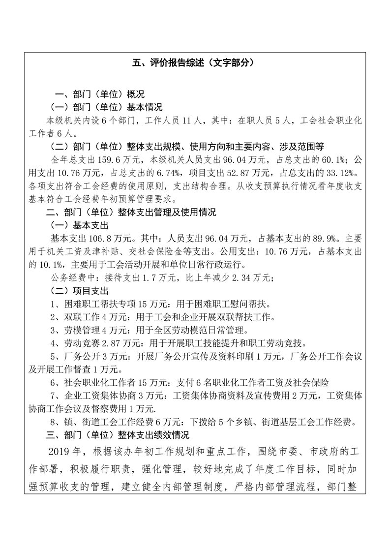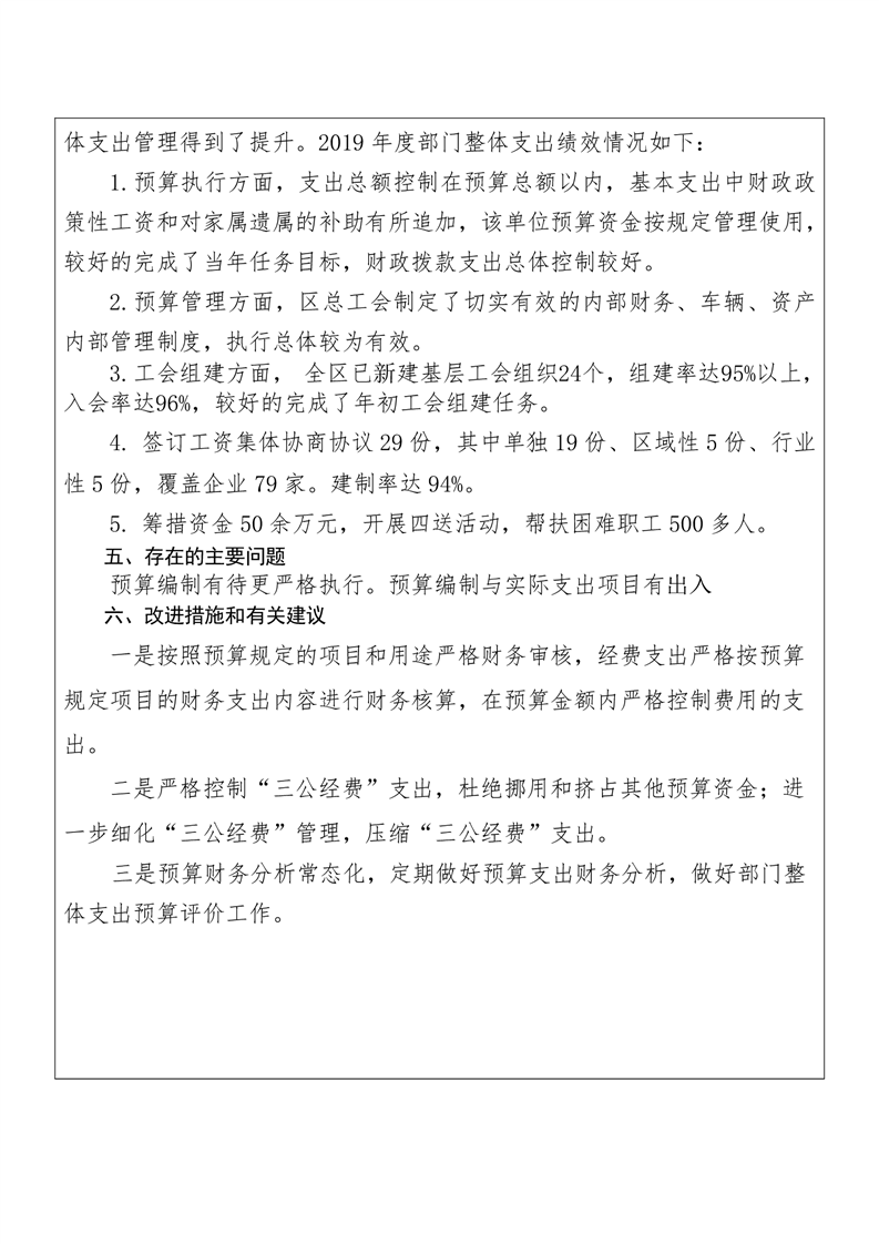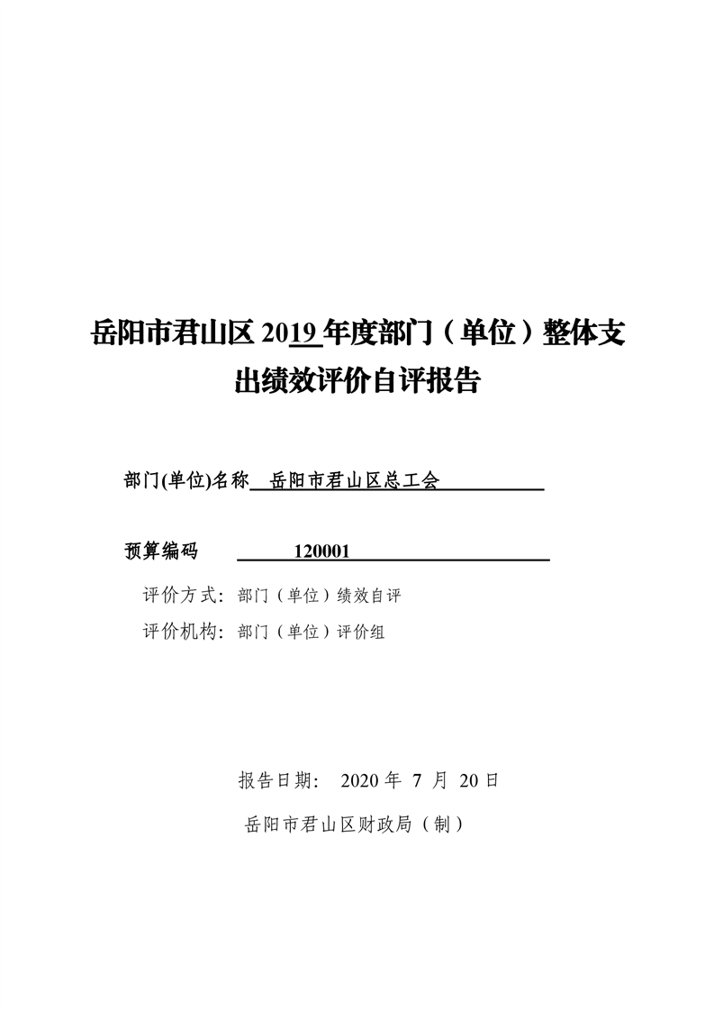 君山区2019年度总工会整体支出绩效评价自评报告