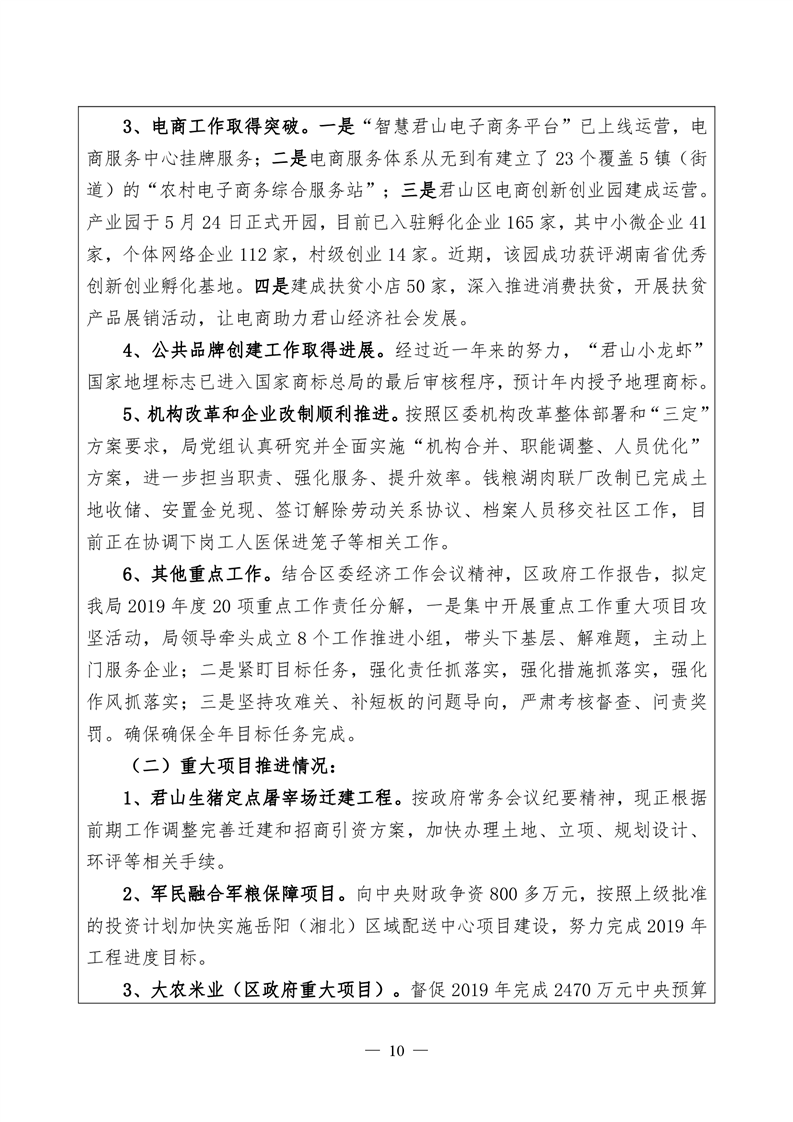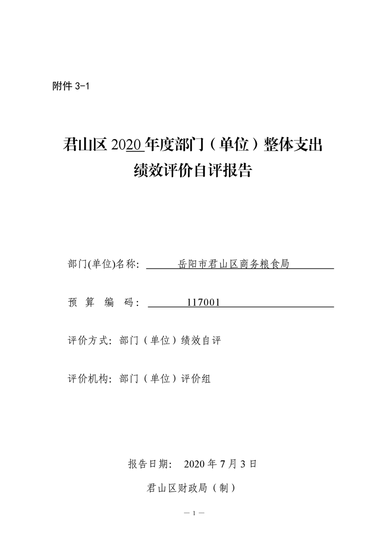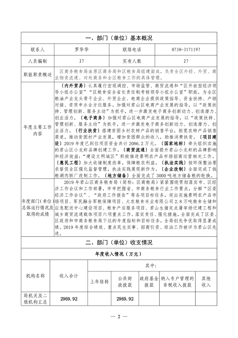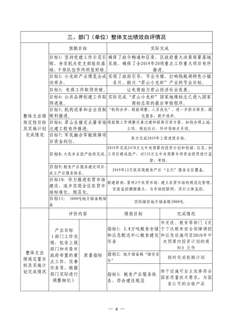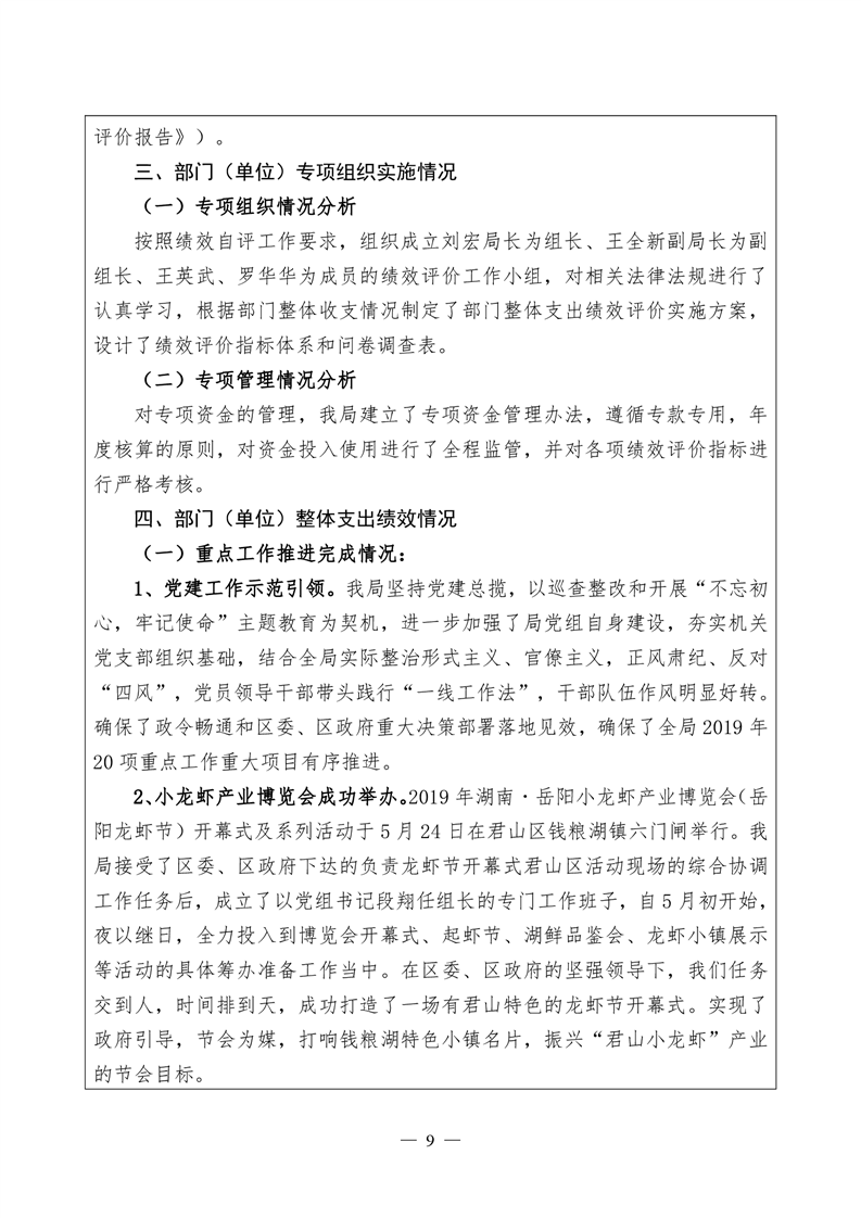 君山区2019年度商务粮食局整体支出绩效评价自评报告