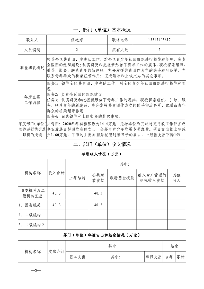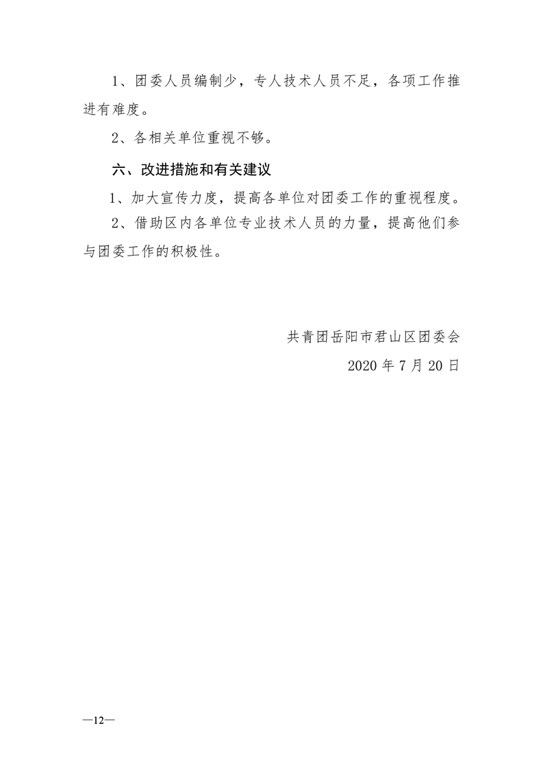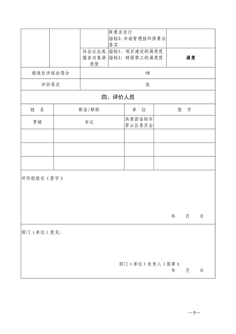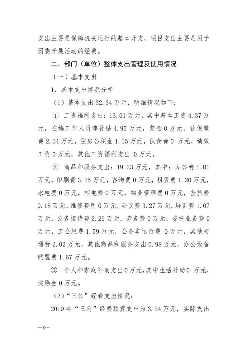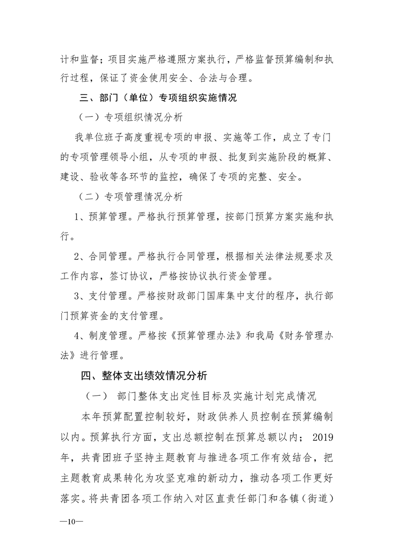 君山区2019年度共青团岳阳市君山区委员会整体支出绩效评价自评报告